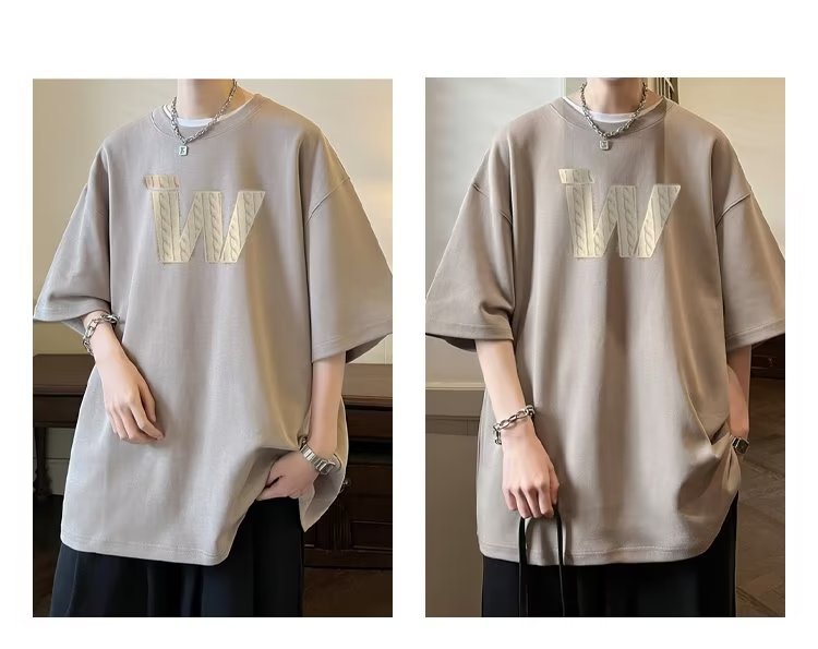 宽松纯棉短袖体恤男新款半袖W字母印花潮牌重磅夏季ins潮上衣T恤
