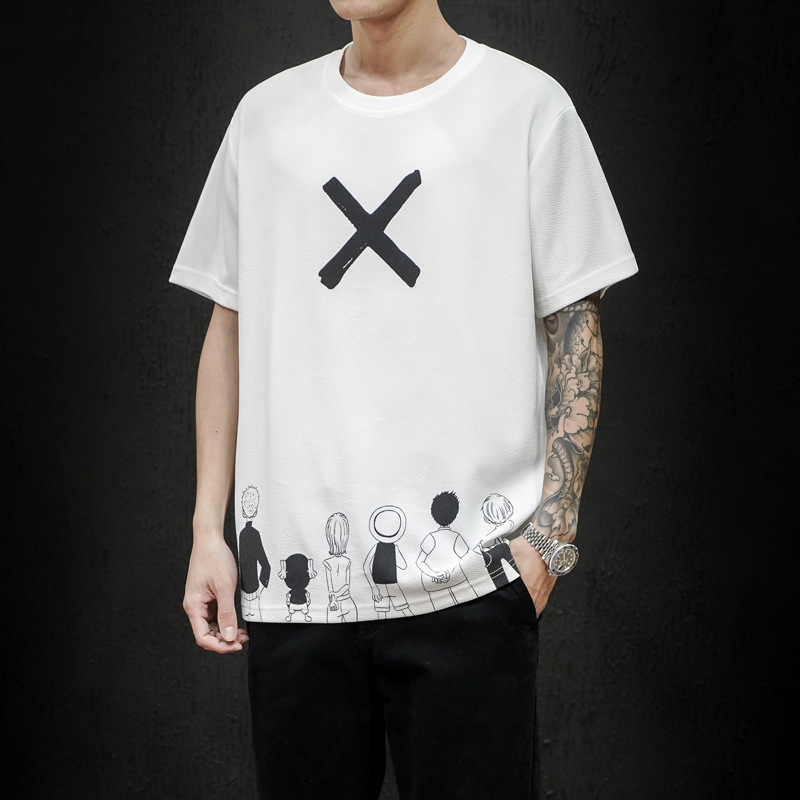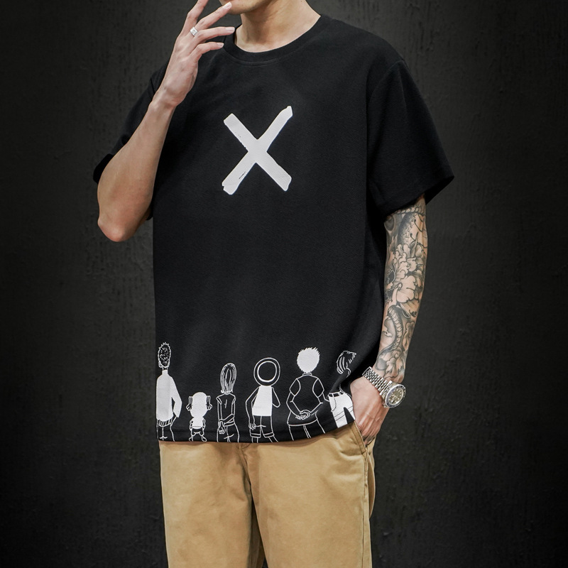 男士短袖T恤新款上衣服韩版潮流大码短袖潮牌宽松印花打底衫T
