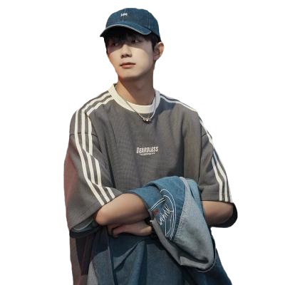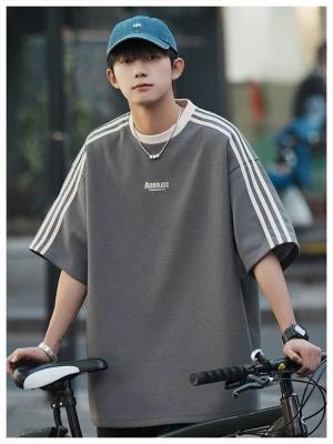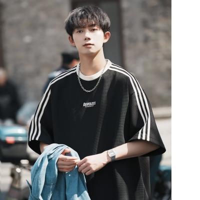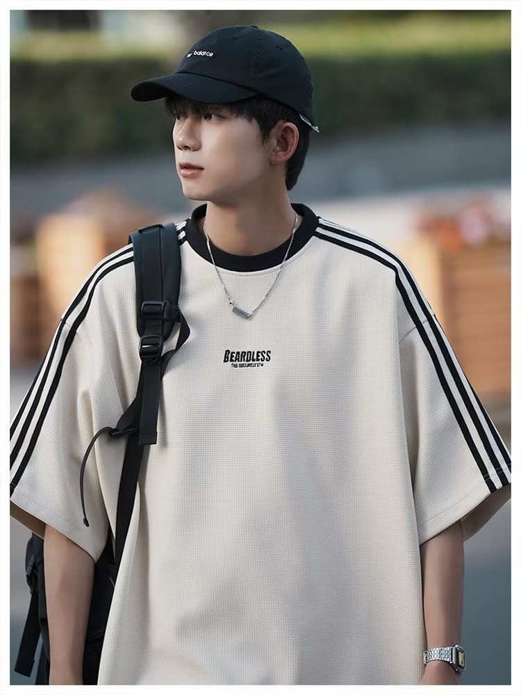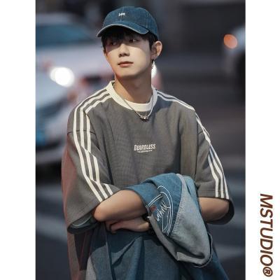 新款夏季撞色港风短袖T恤男ins潮流衣服宽松时尚半袖体恤上衣