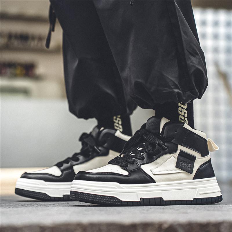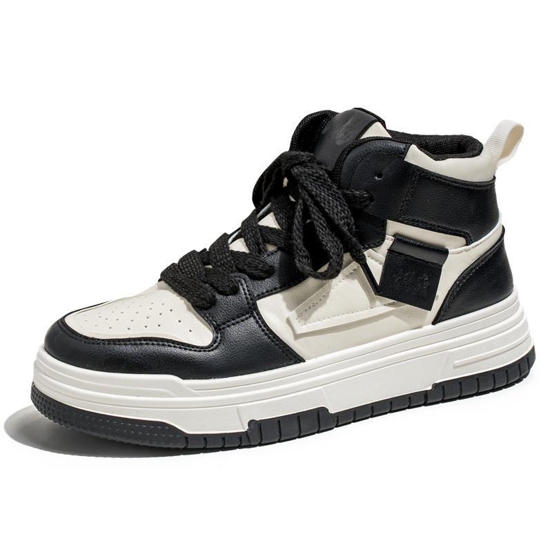 爆款男鞋子新款夏季透气百搭黑白熊猫厚底增高休闲鞋高帮板鞋