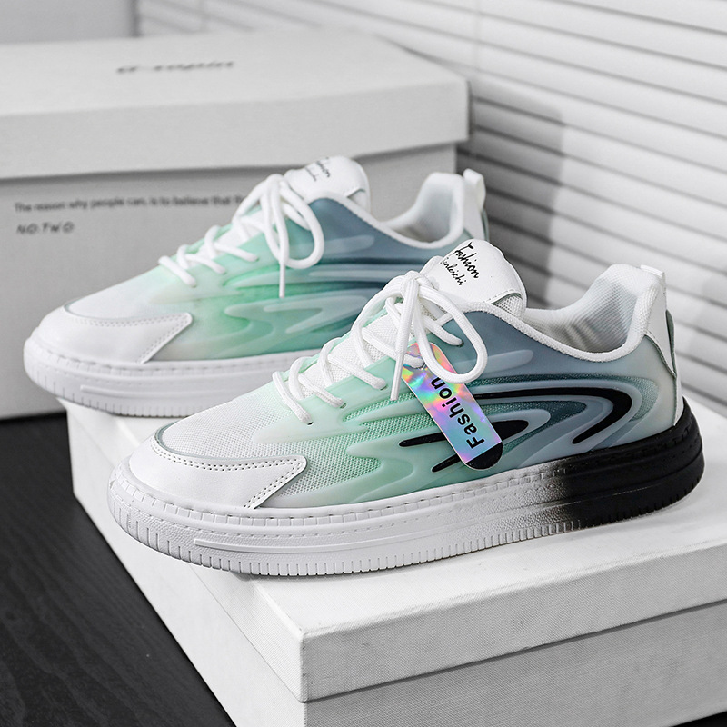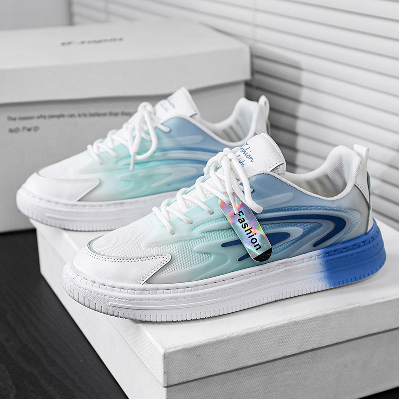 男鞋夏季网面透气百搭休闲板鞋青少年轻便运动增高渐变色小白潮鞋