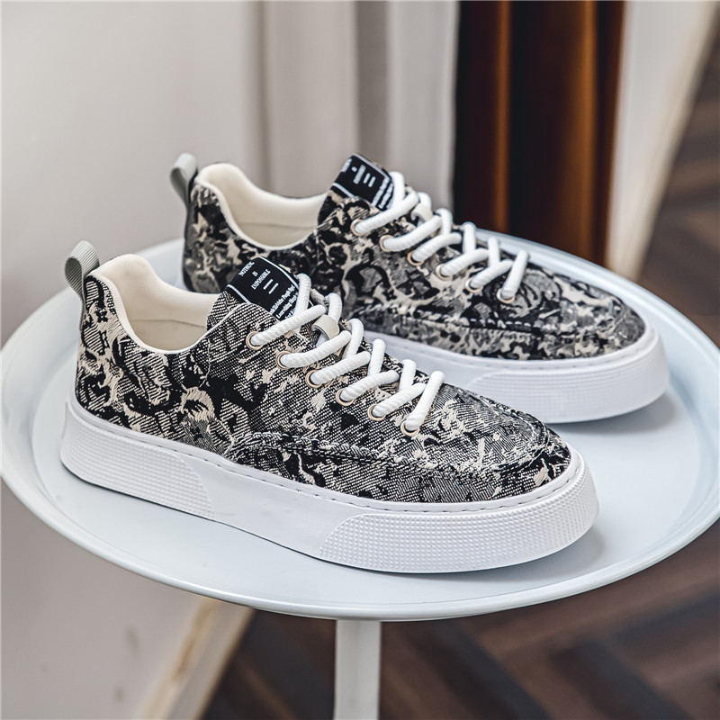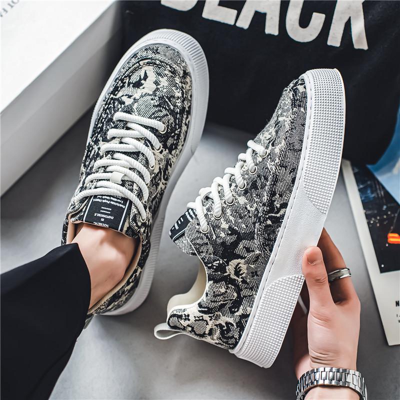 夏季新款潮牌印花透气帆布鞋百搭透气轻便学生休闲低帮板鞋子