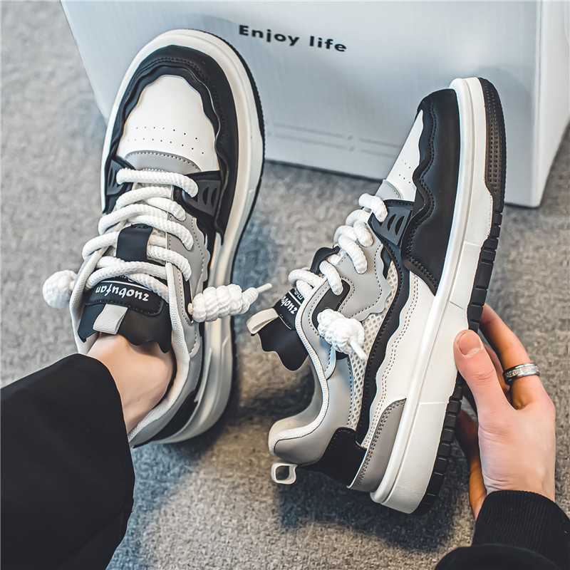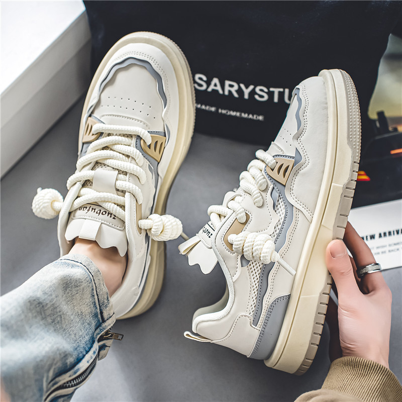 新款男鞋夏季透气潮流运动板鞋青少年学生小众原创防滑面包鞋