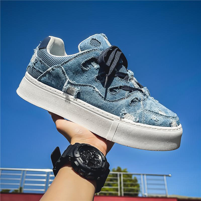 破旧牛仔布男鞋夏季新款透气潮牌百搭休闲板鞋学生厚底运动鞋