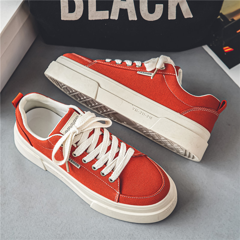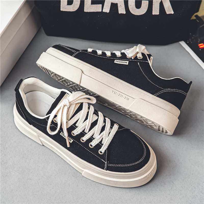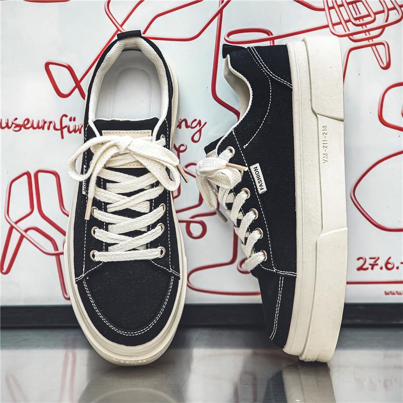 帆布男鞋新款夏季透气潮流百搭休闲低帮板鞋学生厚底运动鞋子