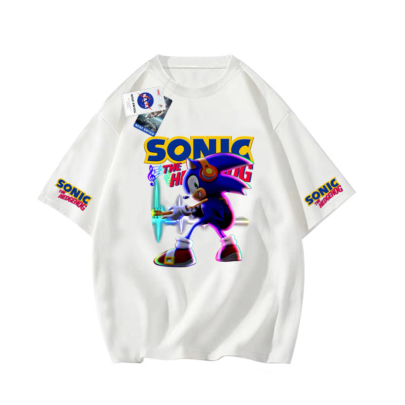 纯棉短袖T恤男女夏潮牌学生卡通动漫索尼克弹琴宽松半袖亲子装
