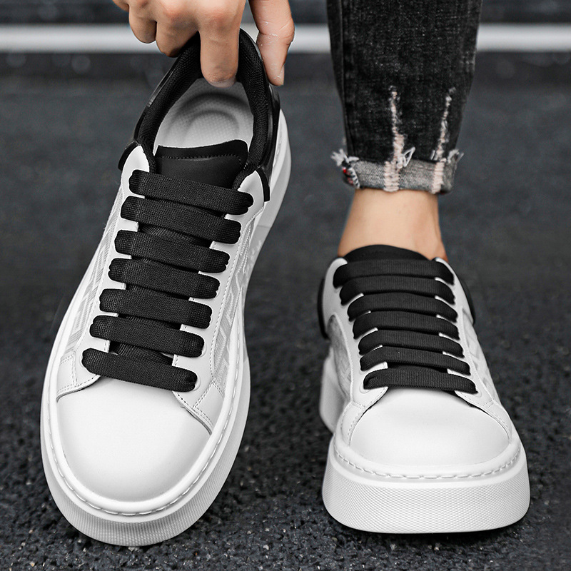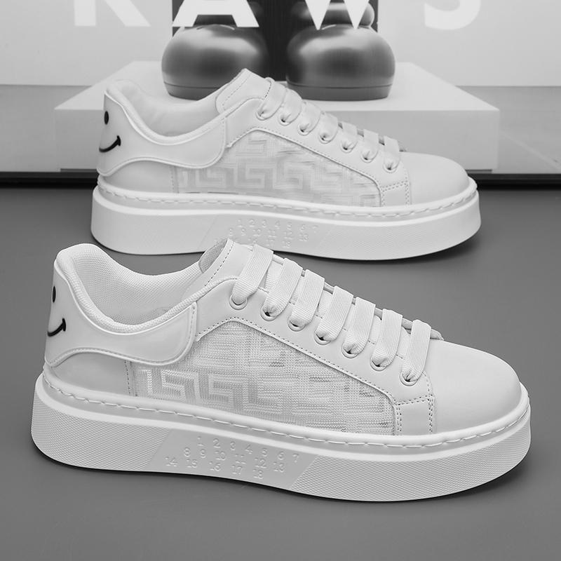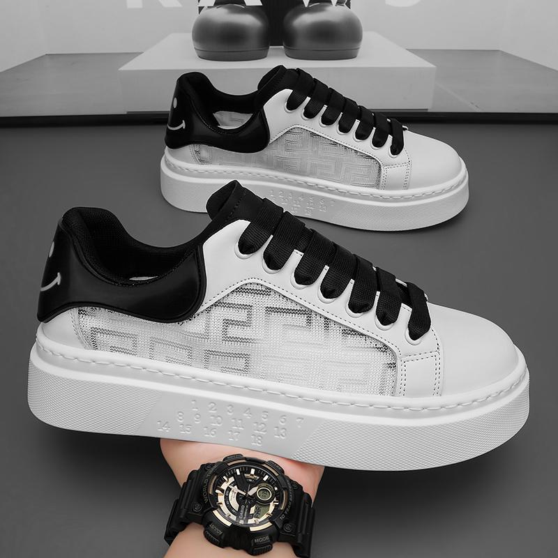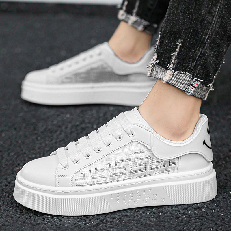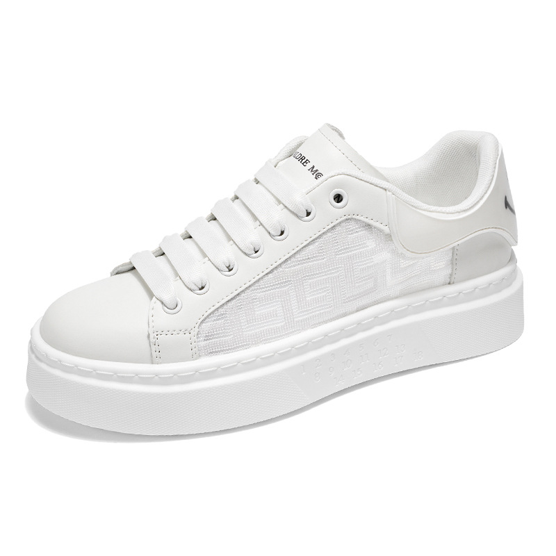 男鞋夏季新款网面透气增高板鞋厚底系带低帮时尚爆款小白鞋潮