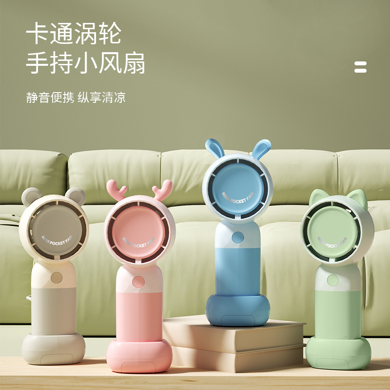 卡通涡轮手持小风扇USB充电式手机支架小电风扇萌熊耳手持风扇