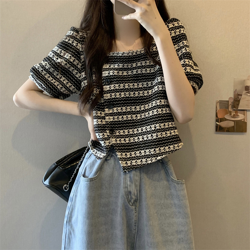 夏季新款法式复古设计感小众单排扣针织衫短款显瘦百搭上衣女