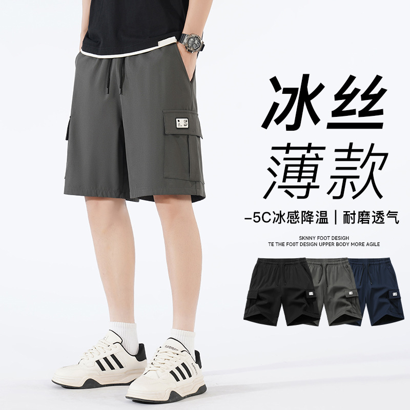 美式工装短裤男夏季2025新款潮牌宽松薄款冰丝凉感透气直筒五分裤