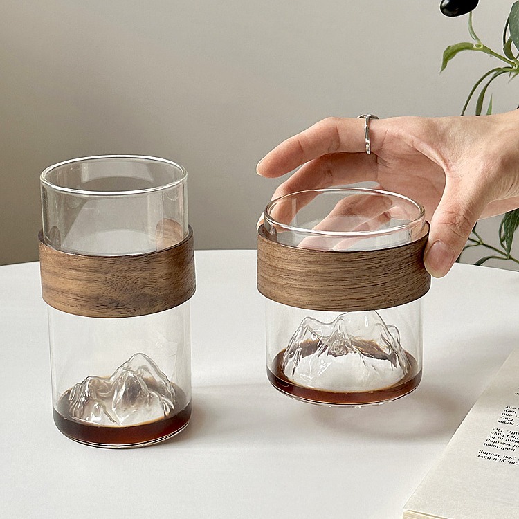 观山杯冰美式拿铁杯咖啡杯富士山杯防烫耐高温水杯饮品杯家用杯子