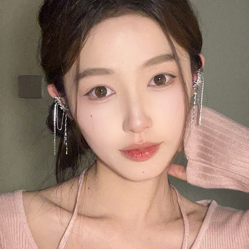 气质轻奢高级感锆石流苏耳夹小众设计感超闪长款耳骨夹无耳洞耳饰