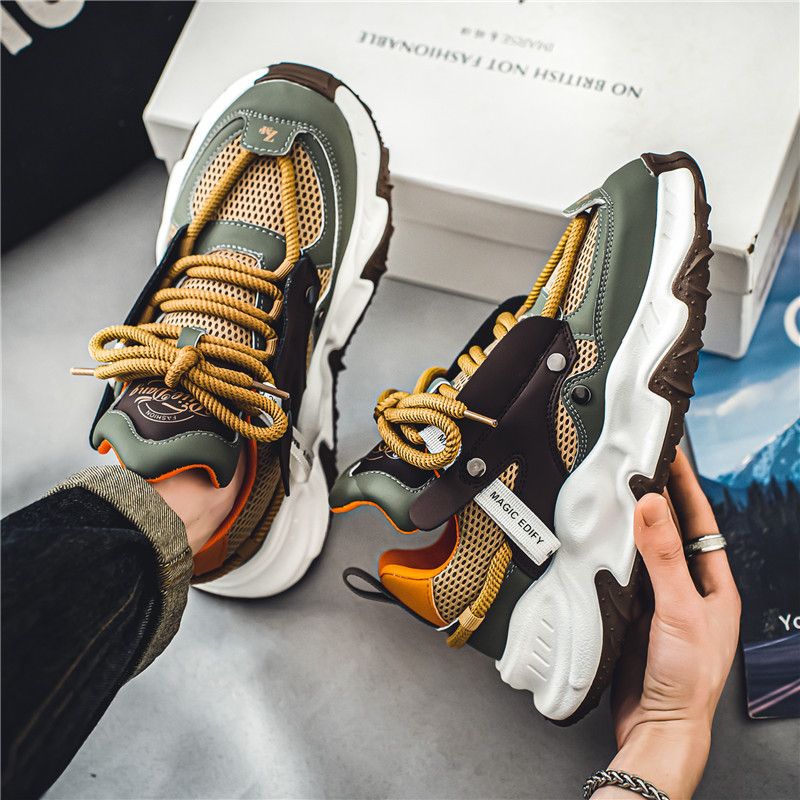 四季休闲潮牌男鞋新款夏季透气网面运动休闲跑步鞋厚底老爹鞋