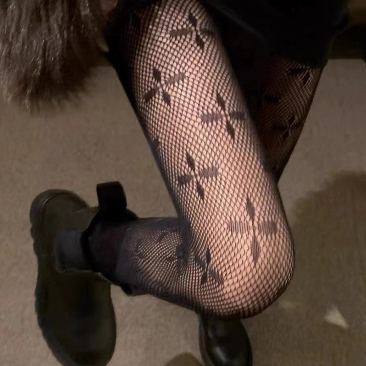 网红四叶草提花连裤jk黑丝薄款ins潮网格春秋性感丝袜镂空渔网袜