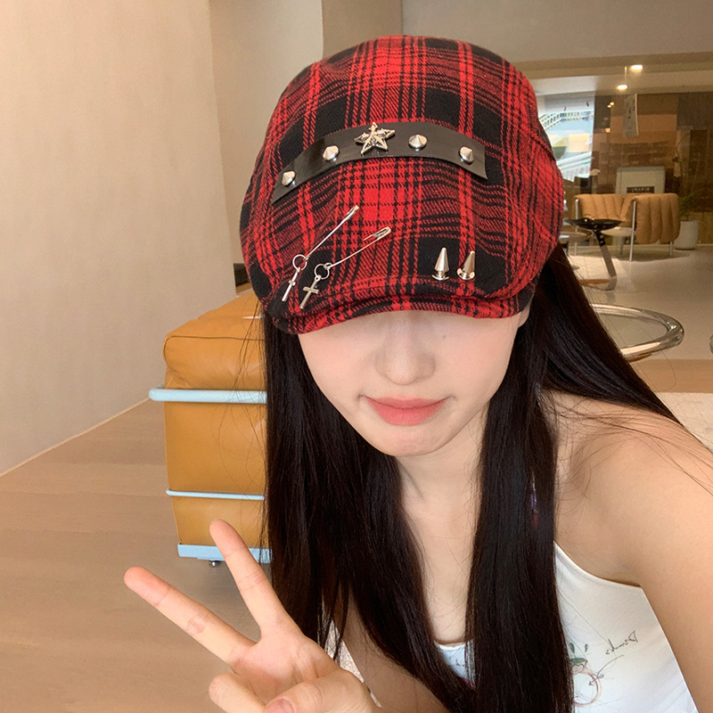 Y2K亚比风文艺复古铆钉前进帽子时尚百搭显脸小拍照出街画家帽女