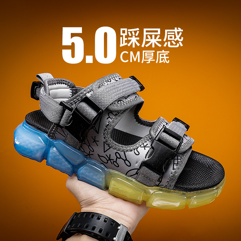 凉鞋男夏季外穿透气踩屎感厚底凉拖防臭防滑两用运动休闲沙滩凉鞋