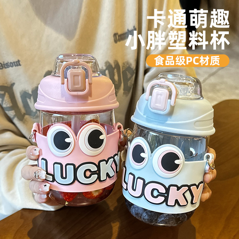 高颜值卡通儿童塑料杯男女孩可爱吸管杯食品级大容量户外便携水杯