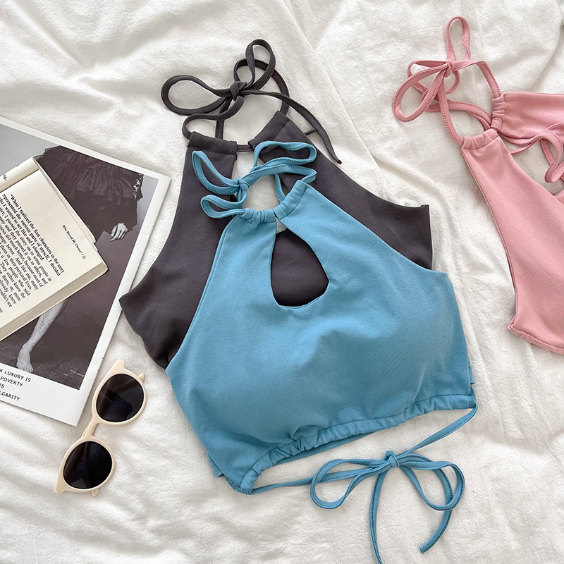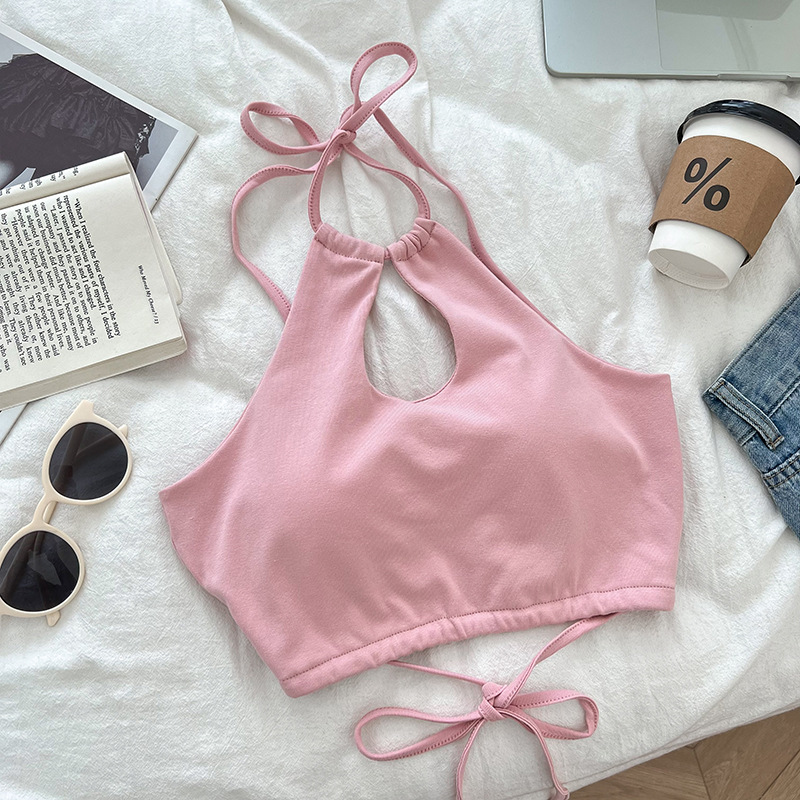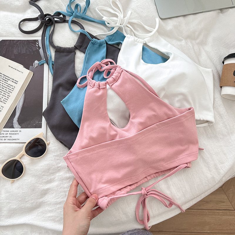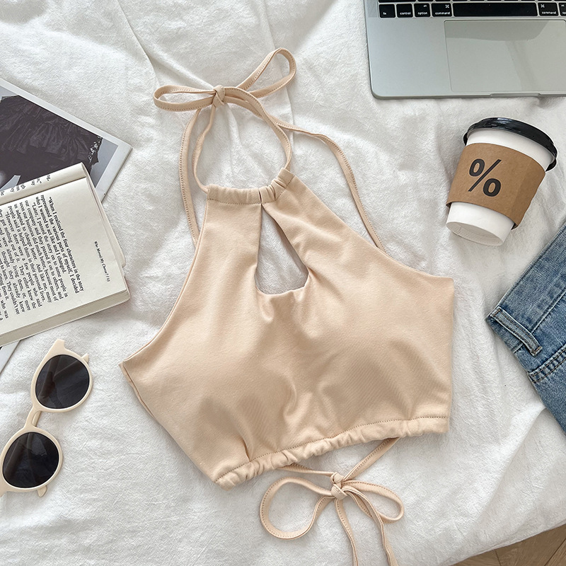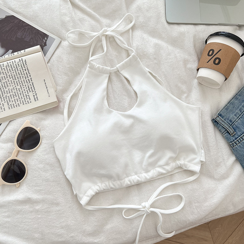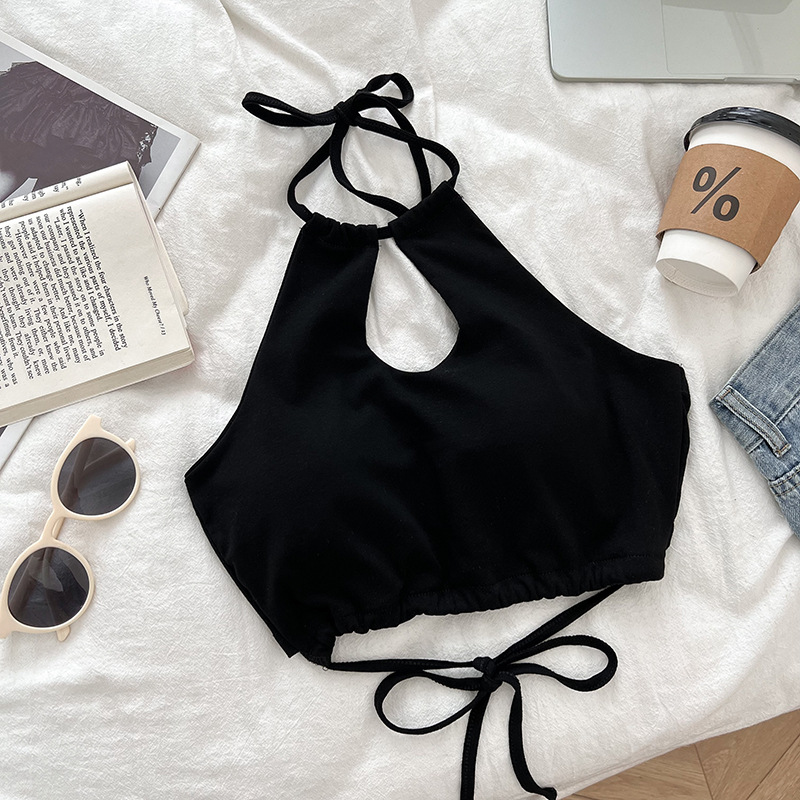 纯棉性感百搭镂空挂脖吊带背心女夏季修身显瘦短款露背抹胸上衣潮