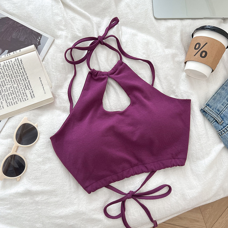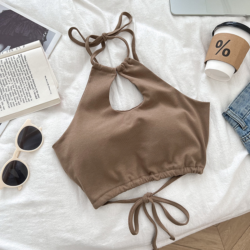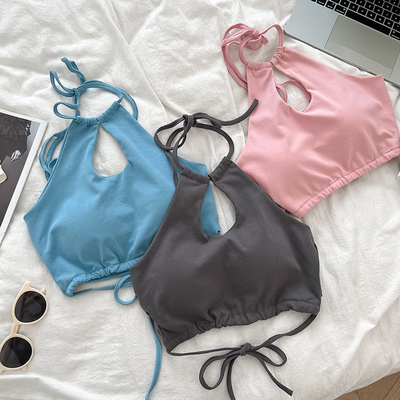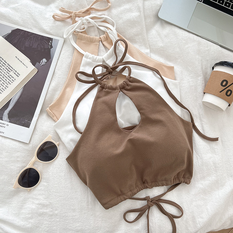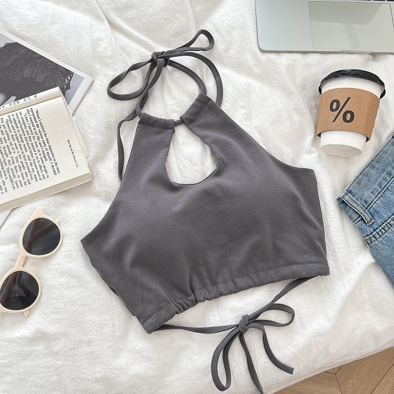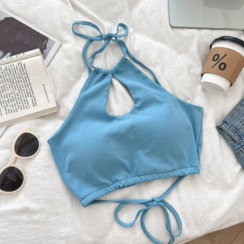 纯棉性感百搭镂空挂脖吊带背心女夏季修身显瘦短款露背抹胸上衣潮