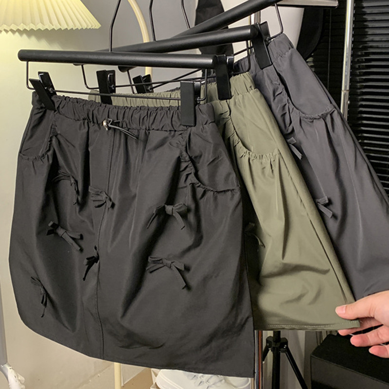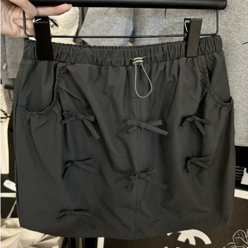 韩国东大门抽绳松紧腰蝴蝶结工装半身裙女夏季新款设计感短裙子潮