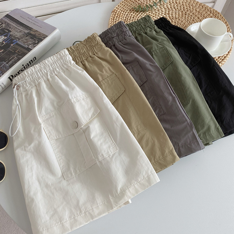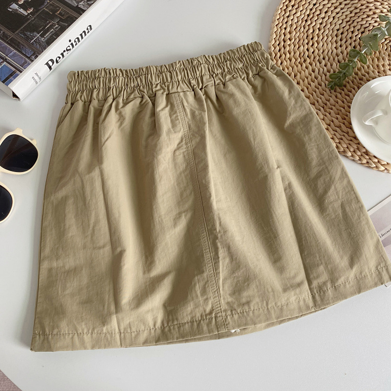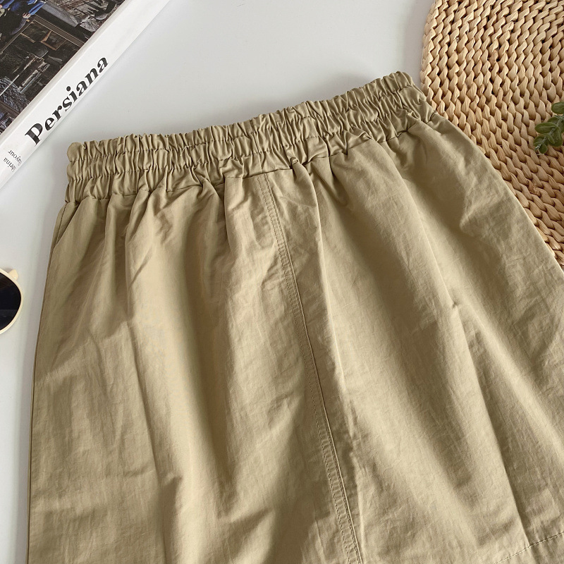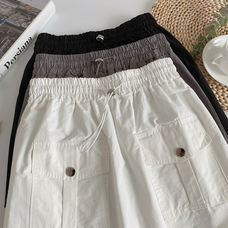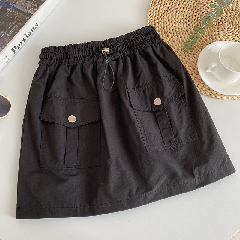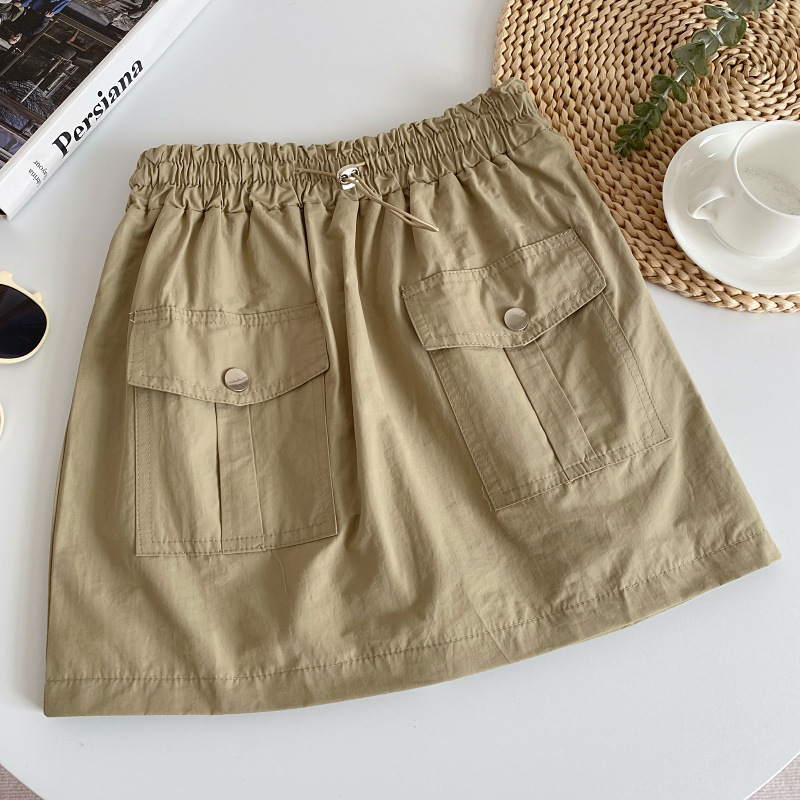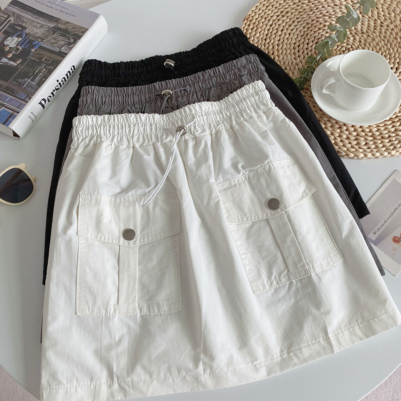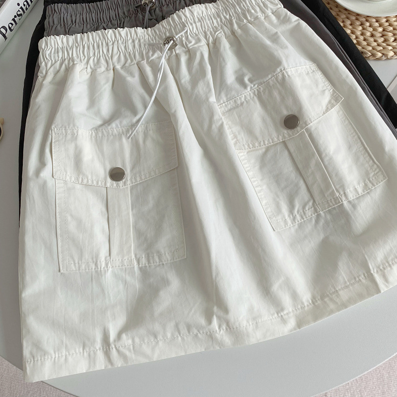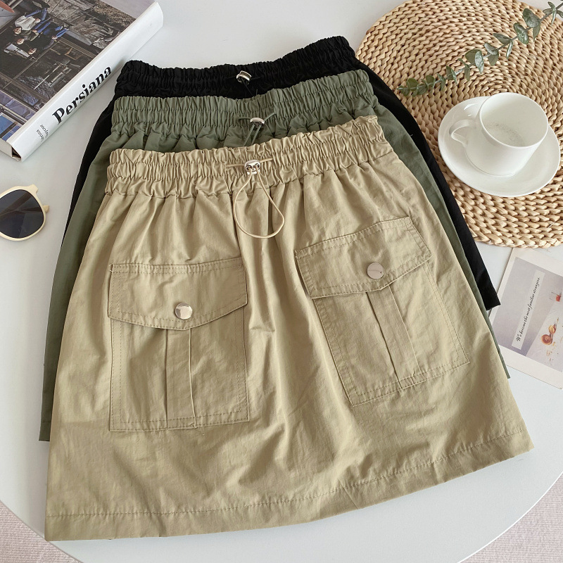 松紧腰个性口袋工装短裙女夏季休闲百搭半身裙防走光裙子女