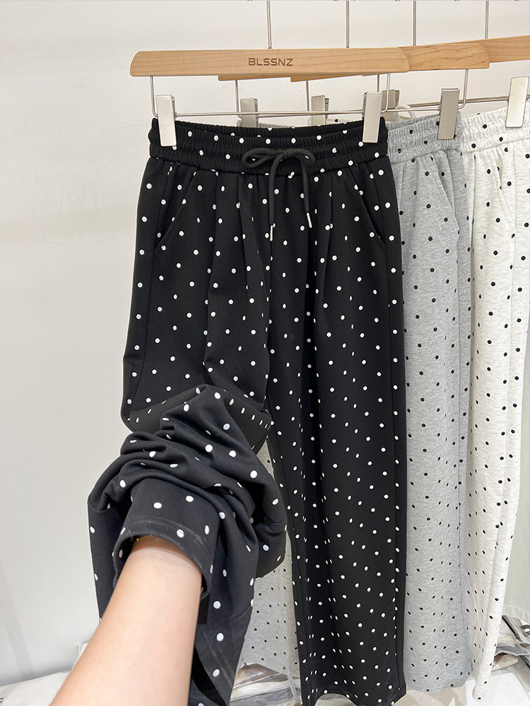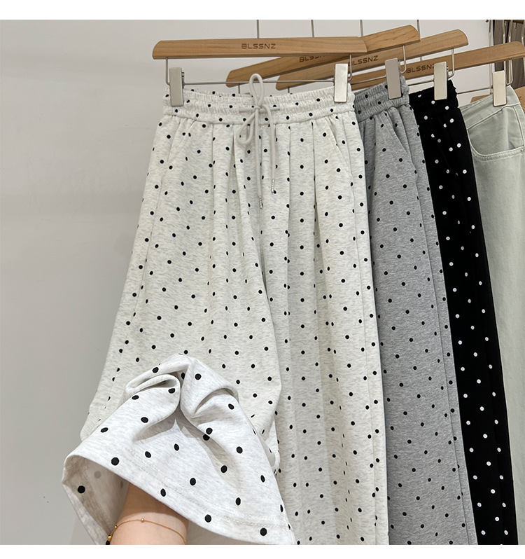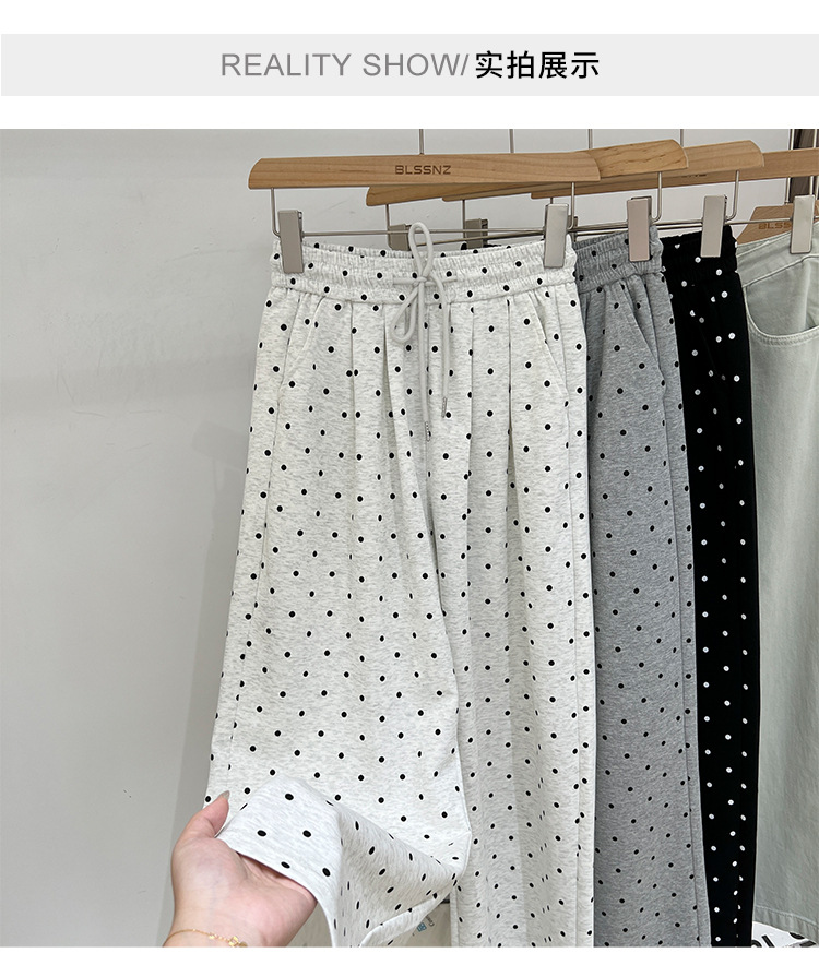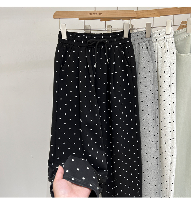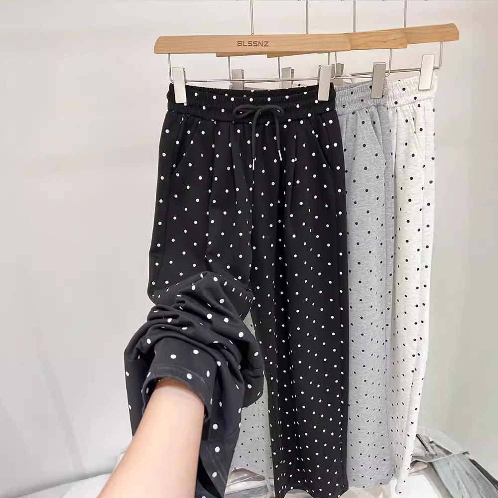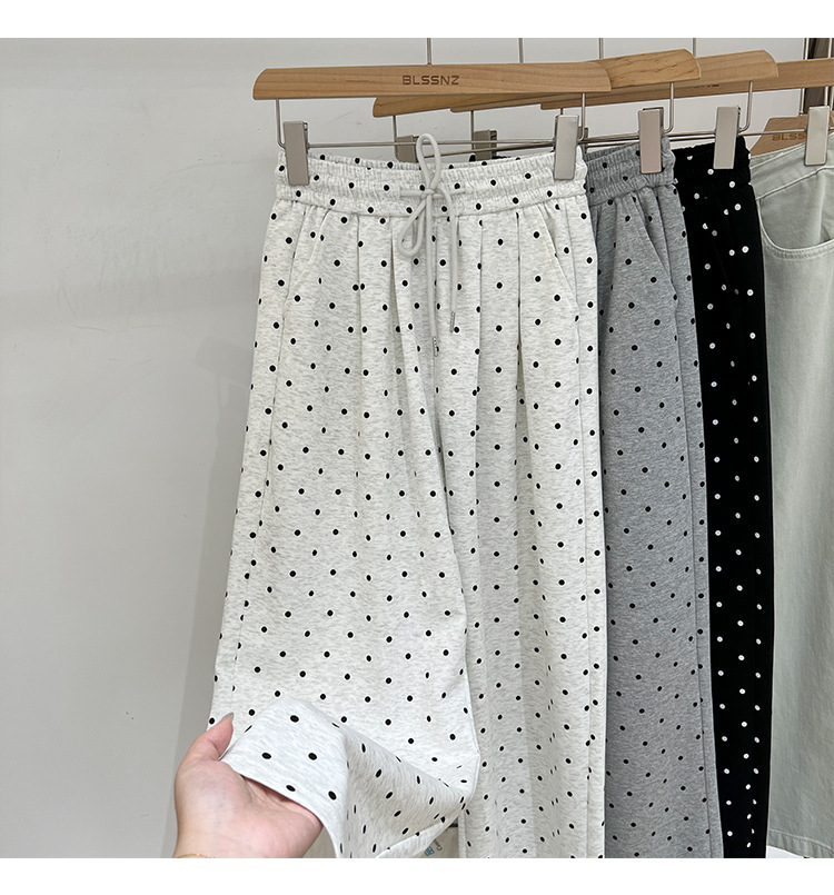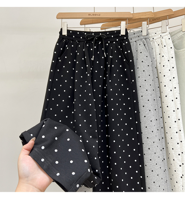 波点休闲裤女夏季高腰显瘦宽松直筒阔腿裤垂感拖地裤子