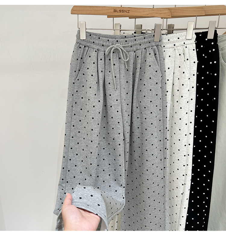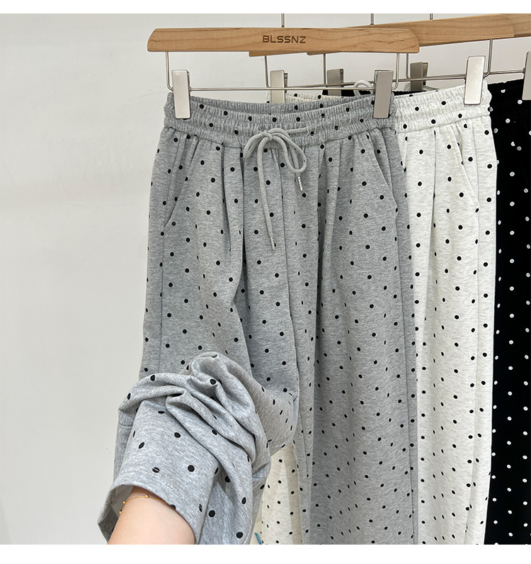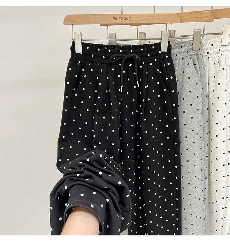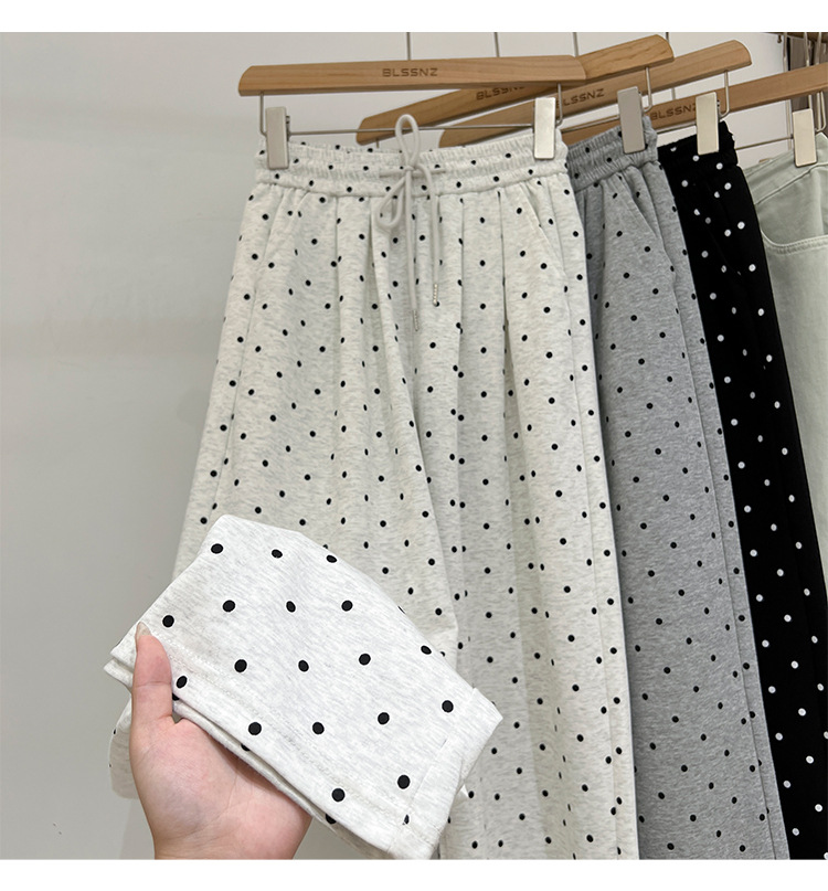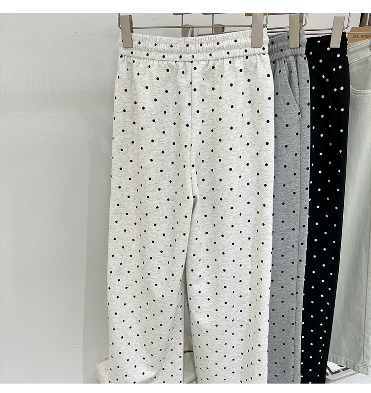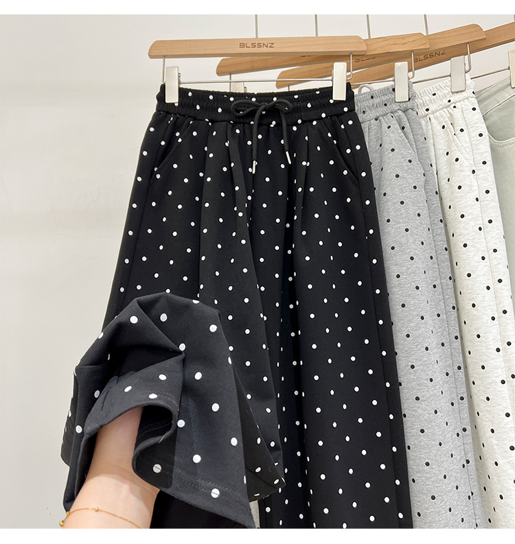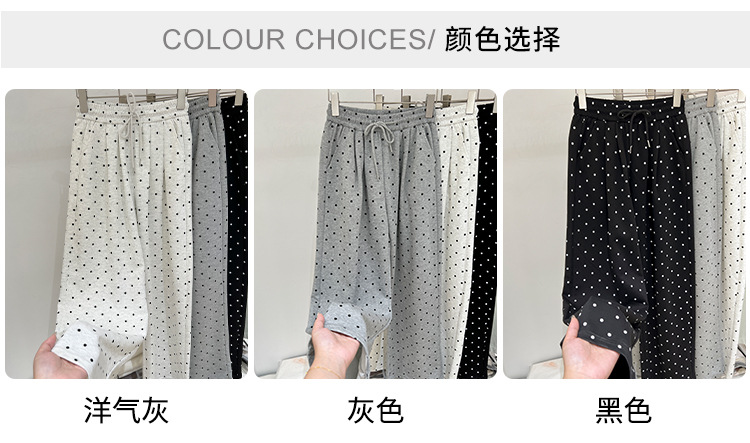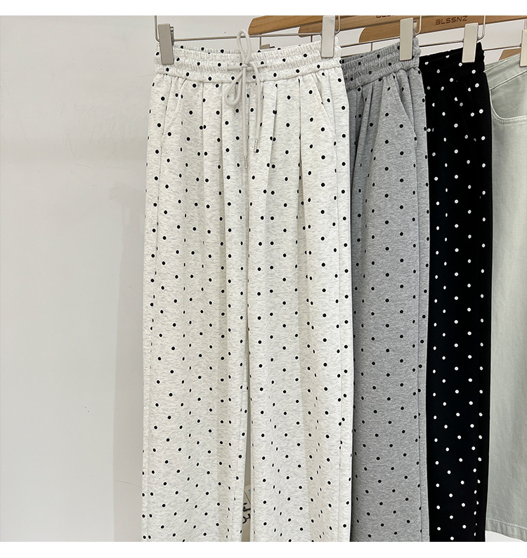波点休闲裤女夏季高腰显瘦宽松直筒阔腿裤垂感拖地裤子