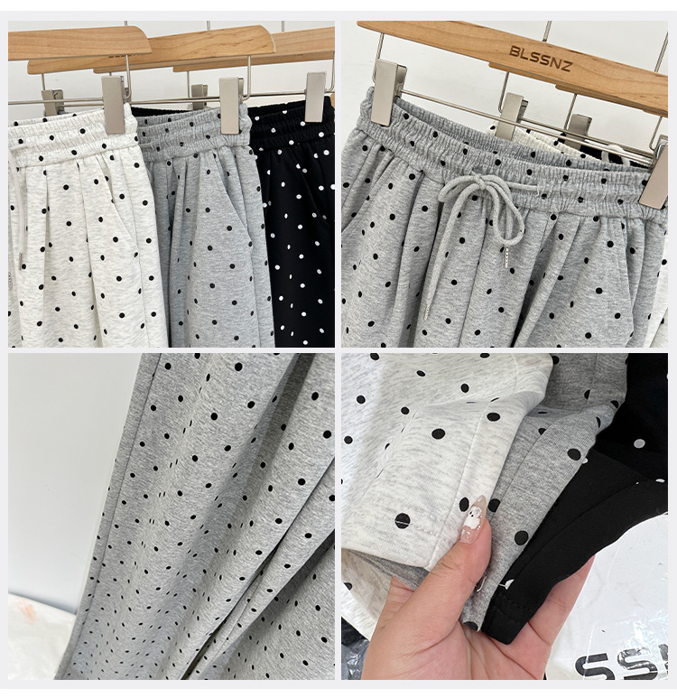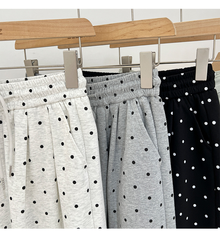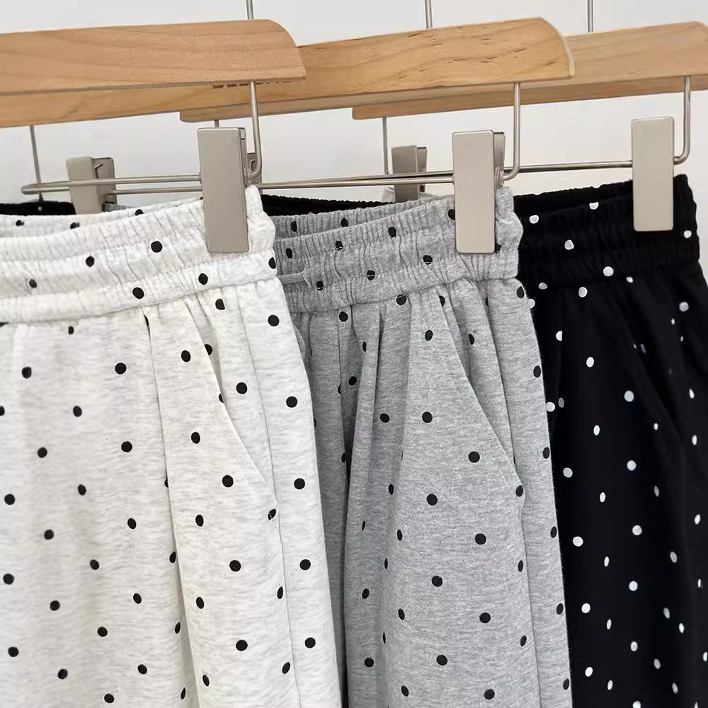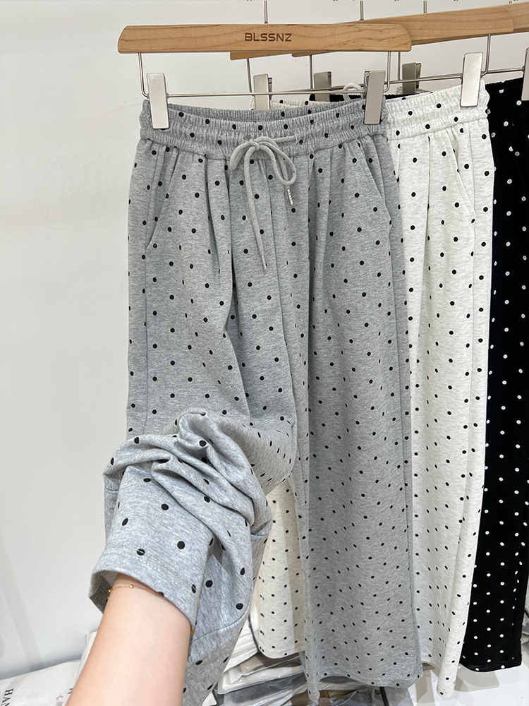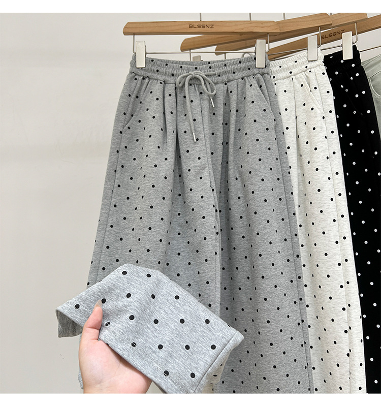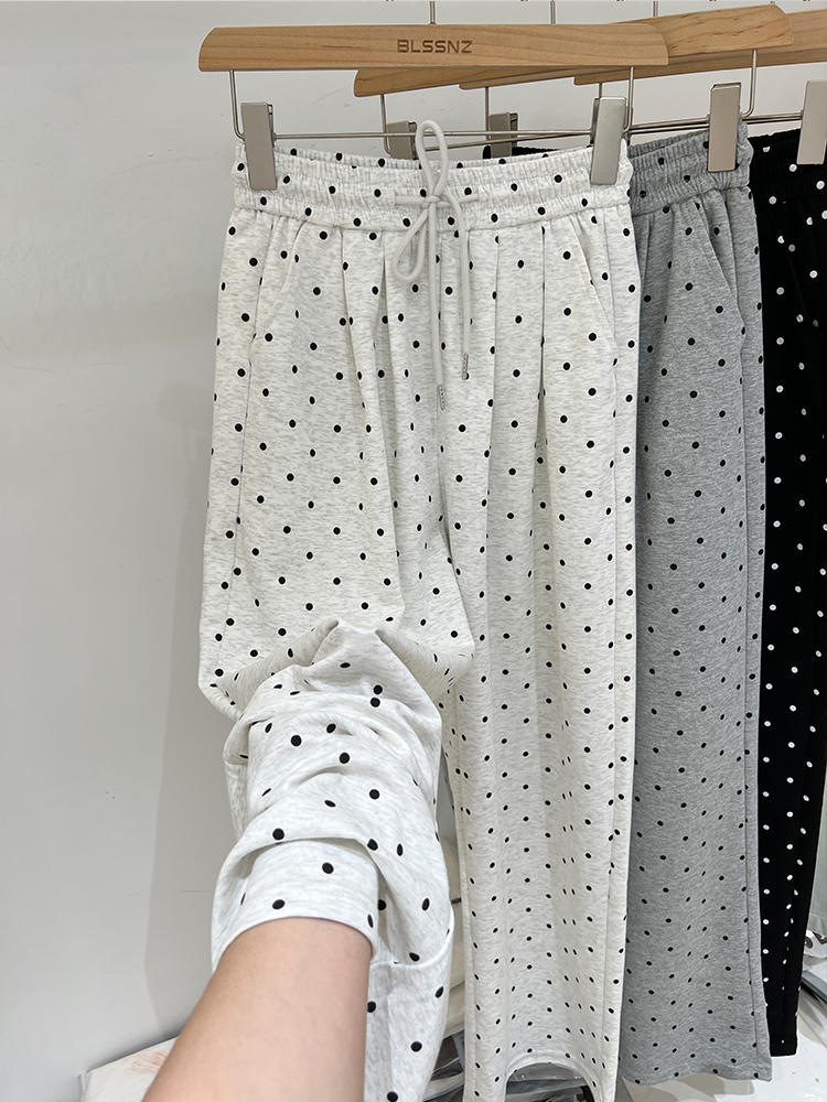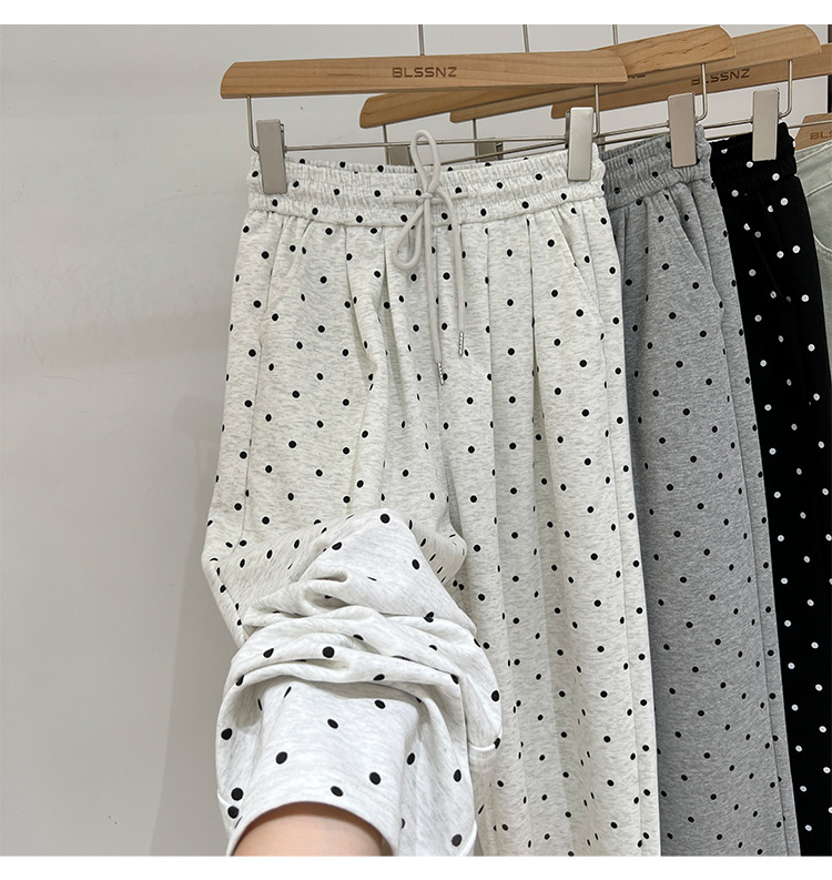 波点休闲裤女夏季高腰显瘦宽松直筒阔腿裤垂感拖地裤子