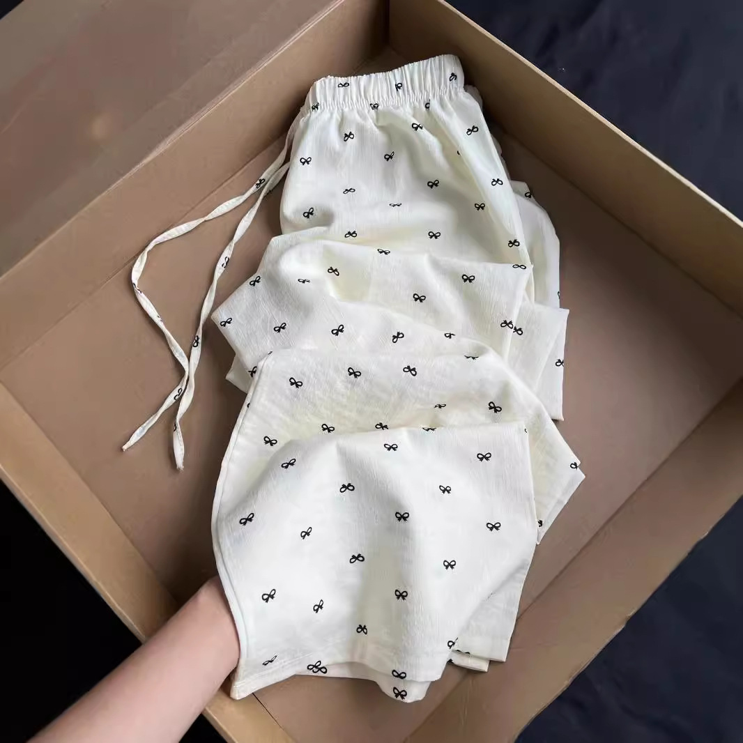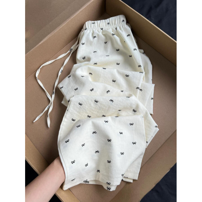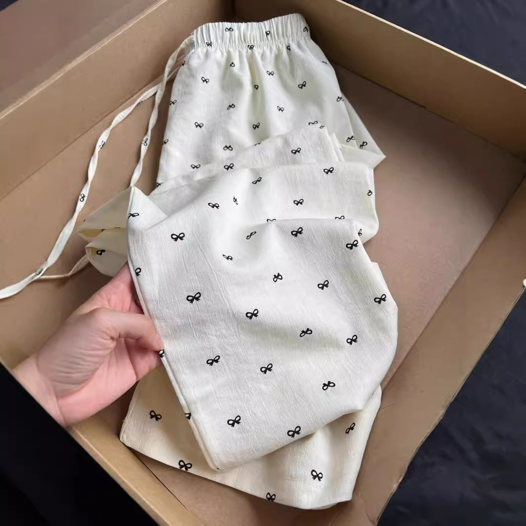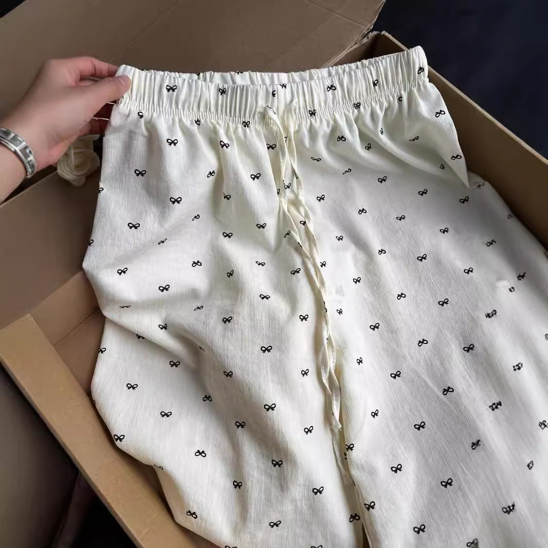 蝴蝶结印花阔腿裤女夏季新款韩系减龄宽松垂感显瘦休闲裤子薄