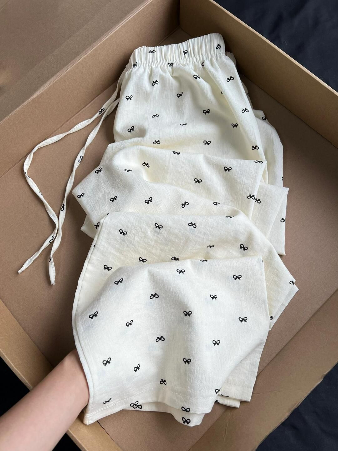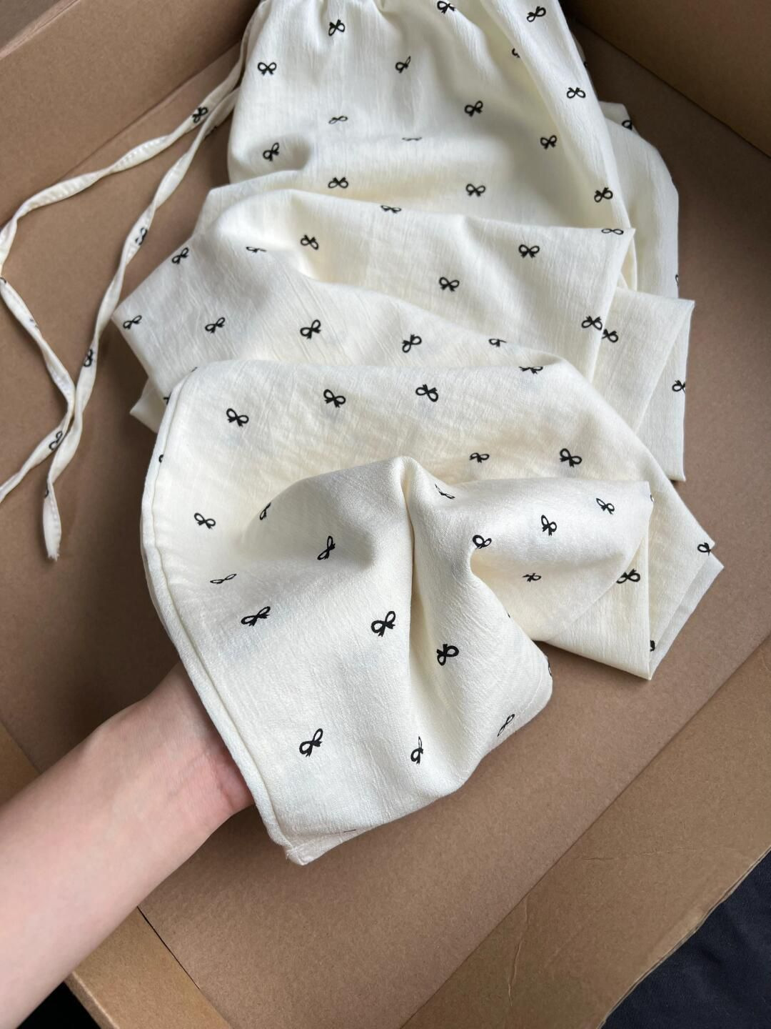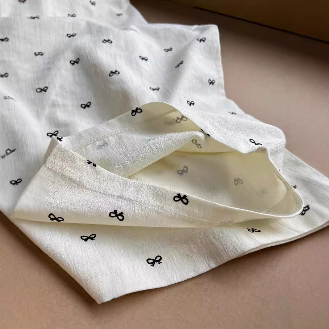 蝴蝶结印花阔腿裤女夏季新款韩系减龄宽松垂感显瘦休闲裤子薄