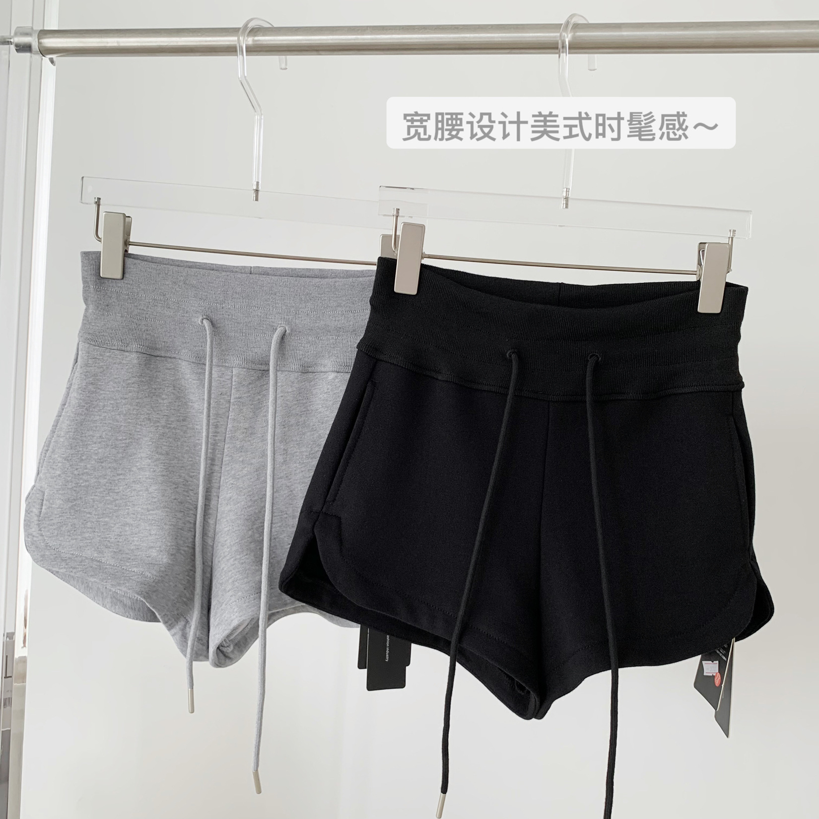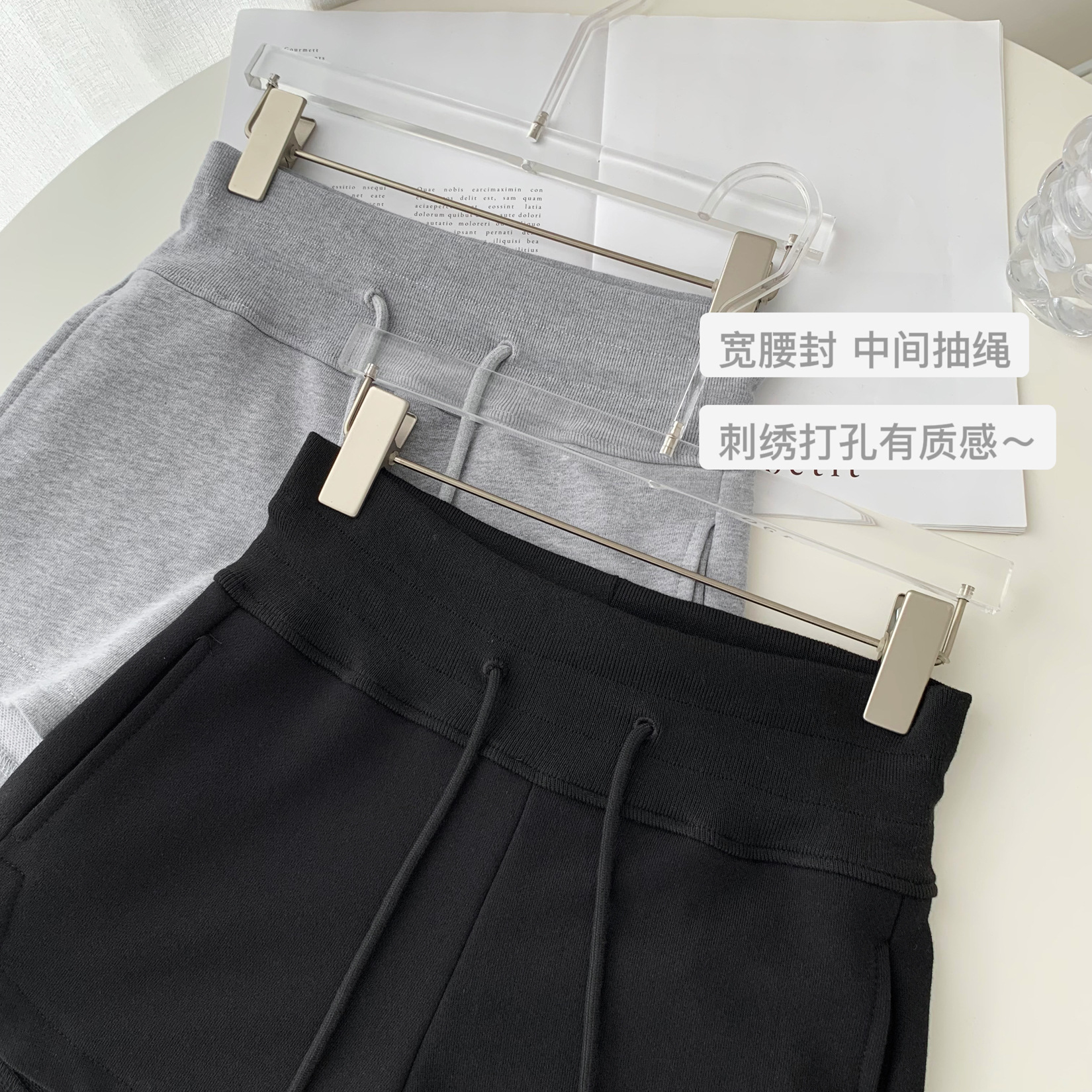 灰色休闲运动短裤女设计感小众夏新款高腰显瘦直筒阔腿裤子潮