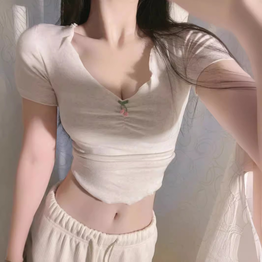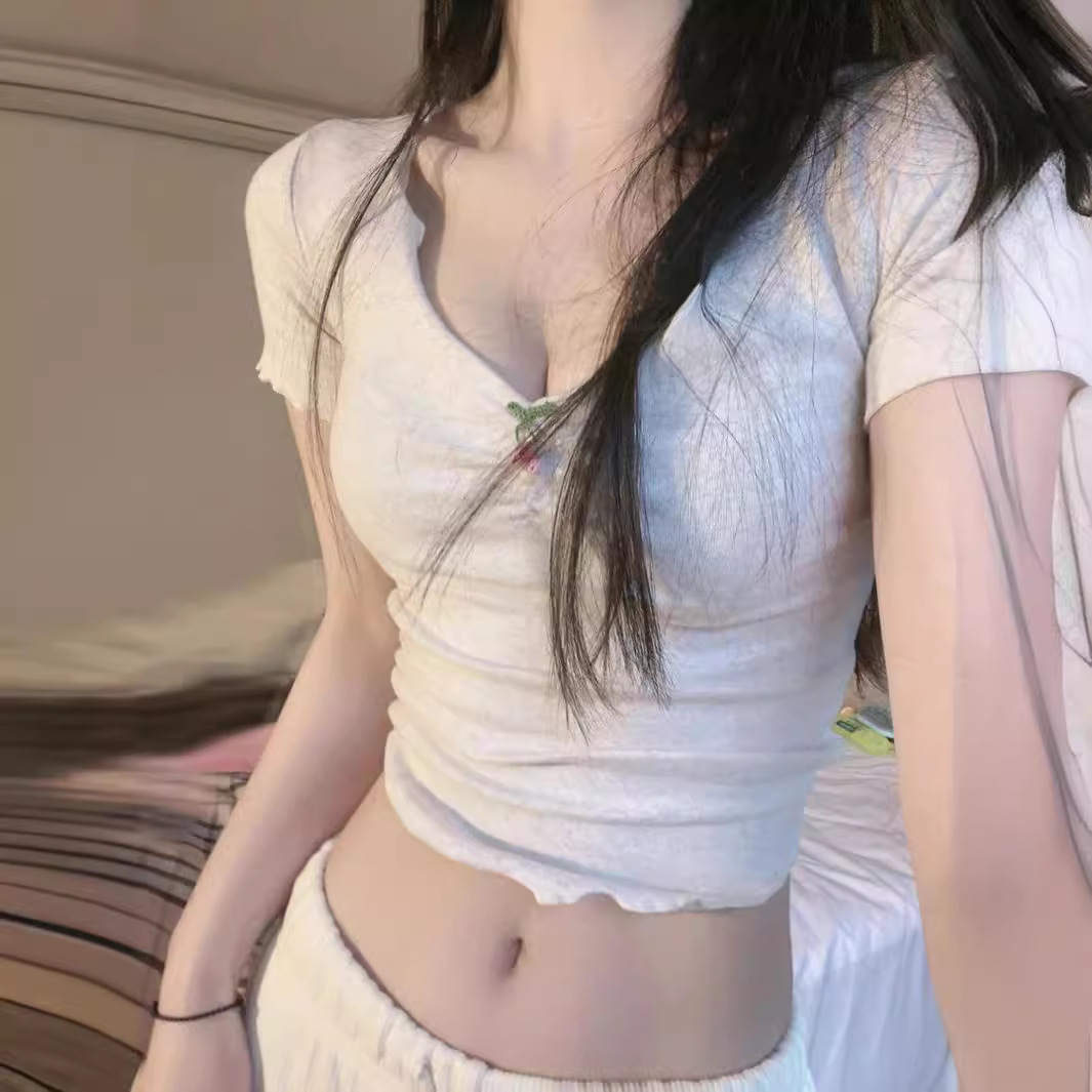 纯欲风性感辣妹短款上衣打底衫内搭设计感小众白色短袖t恤女夏季