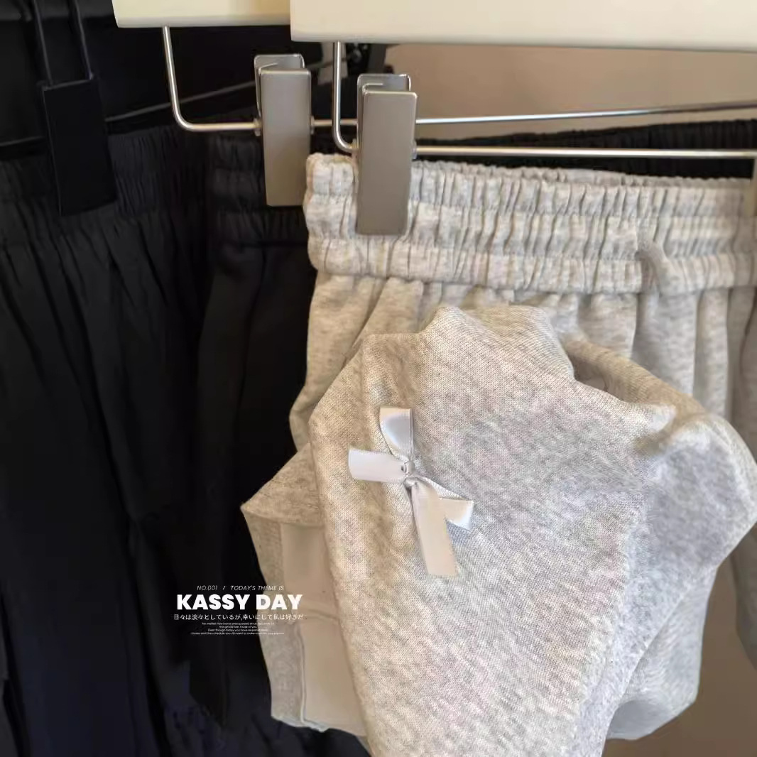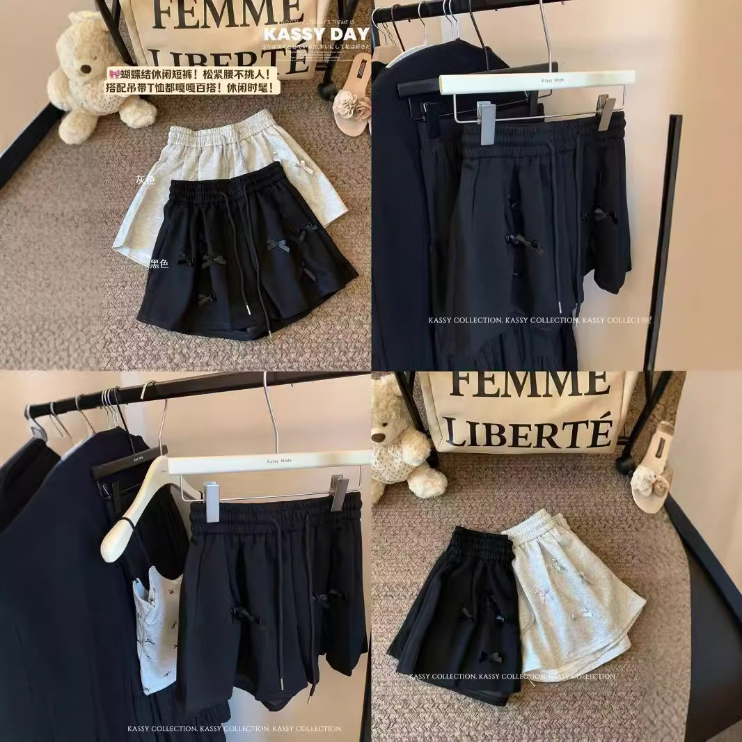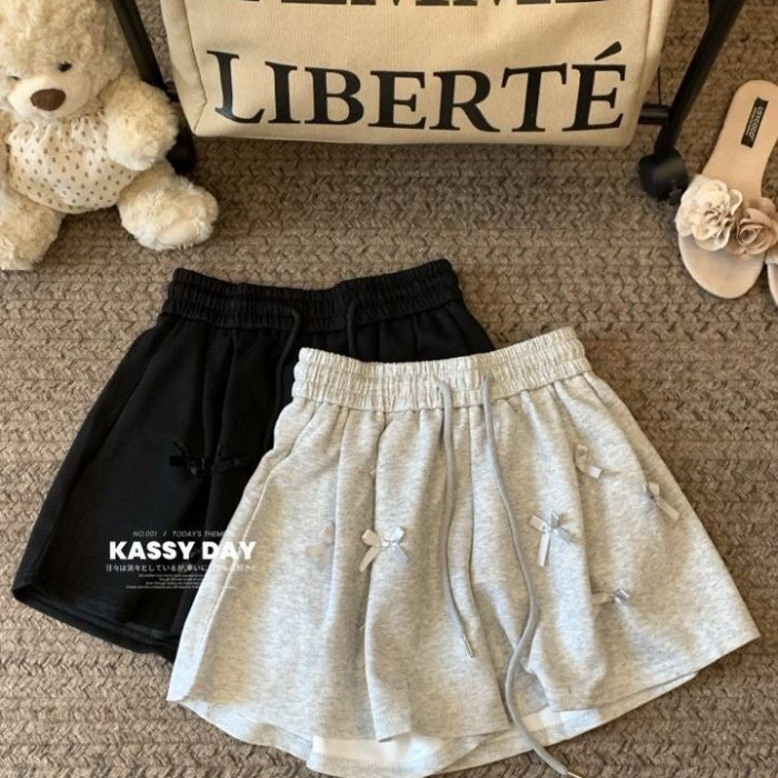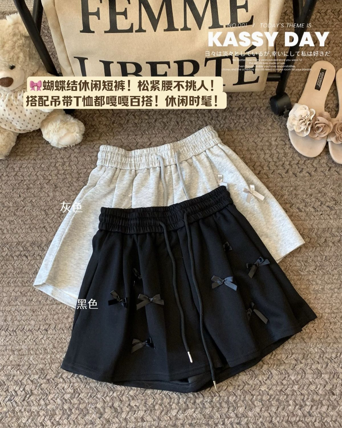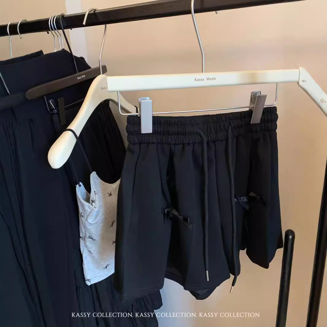 黑色休闲短裤女夏季蝴蝶结a字高腰热裤阔腿裤运动裤