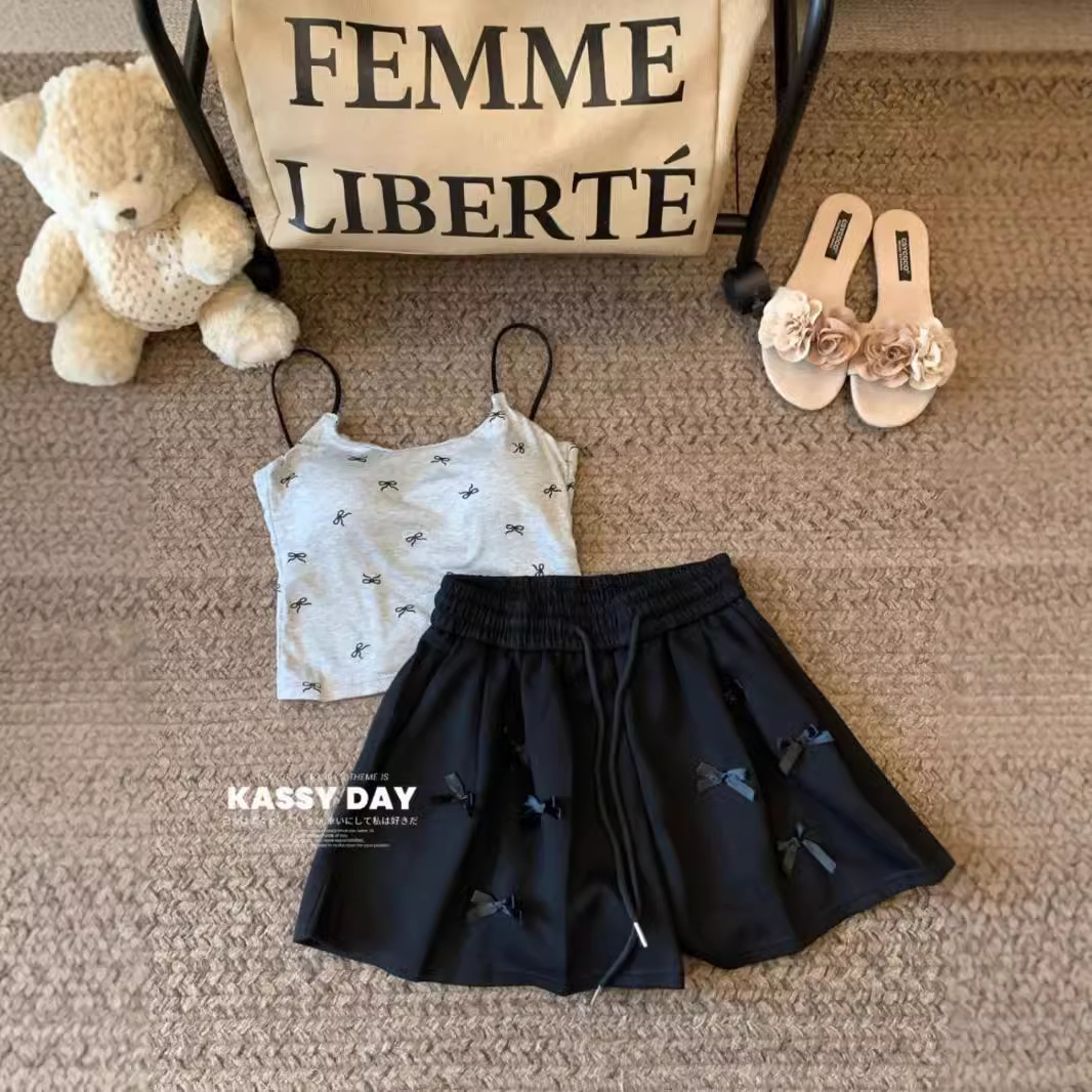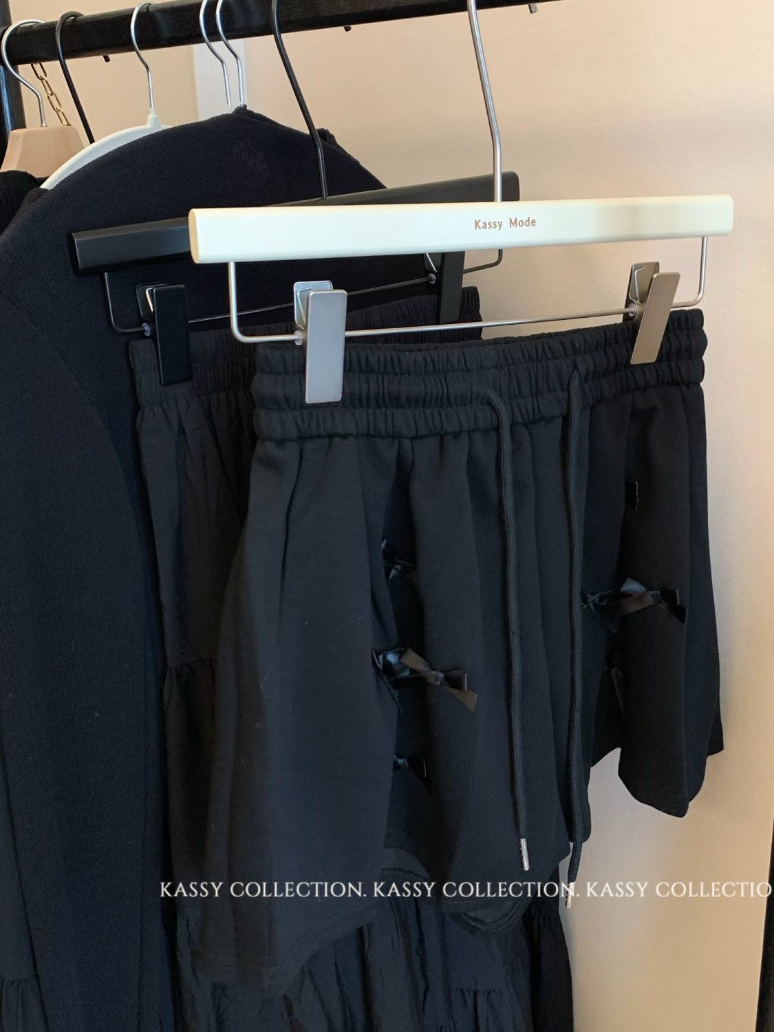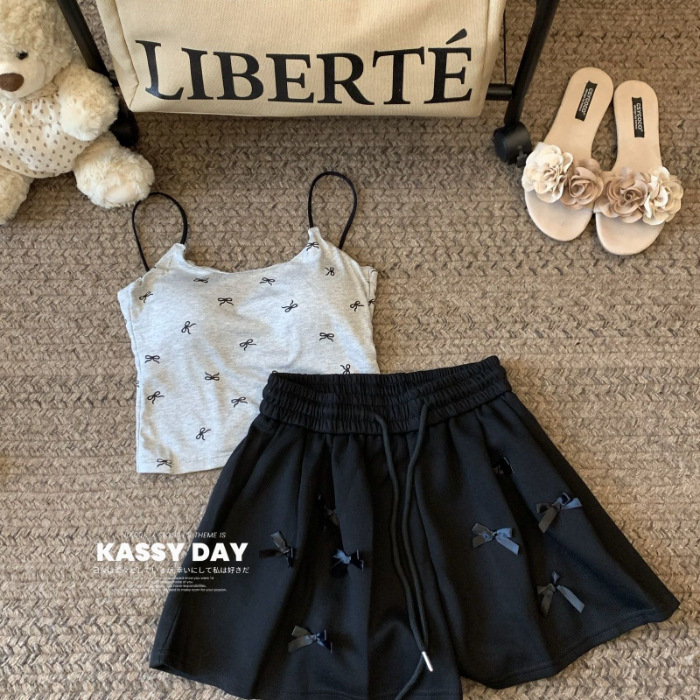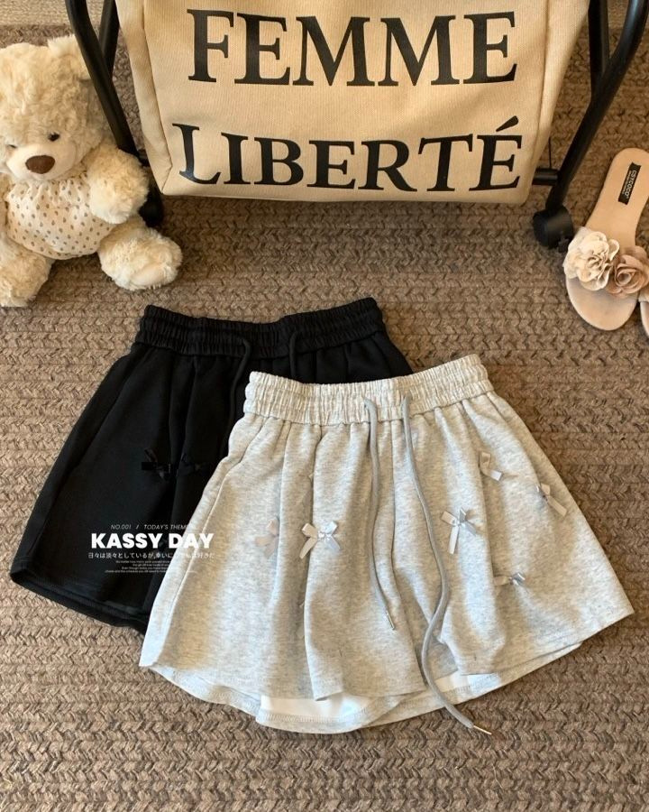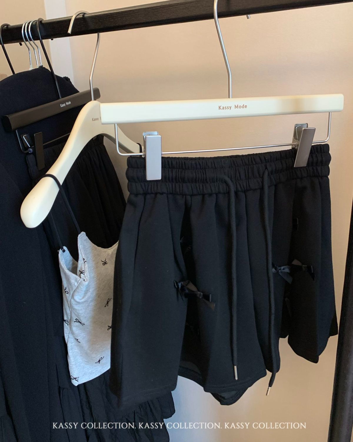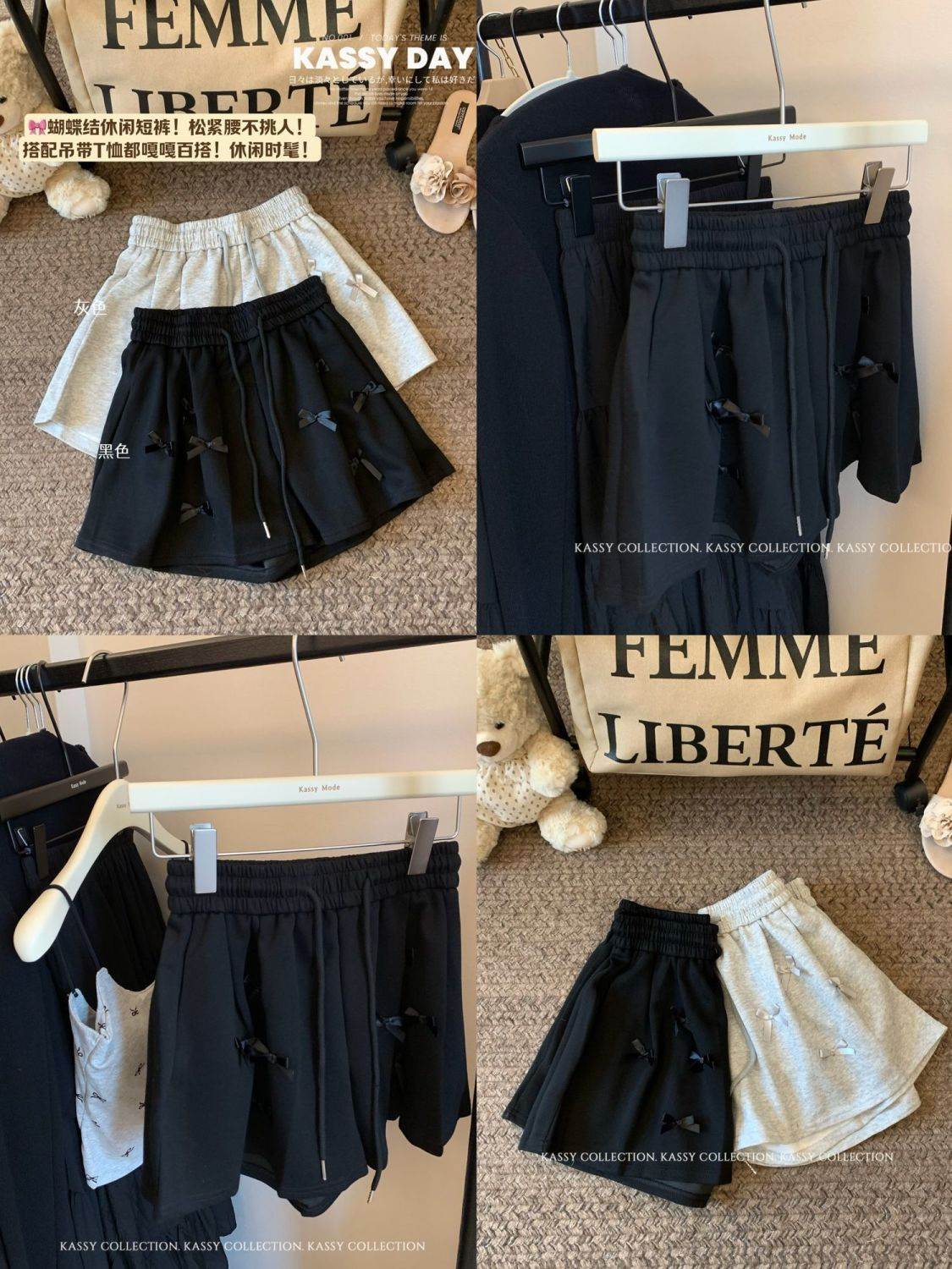 黑色休闲短裤女夏季蝴蝶结a字高腰热裤阔腿裤运动裤