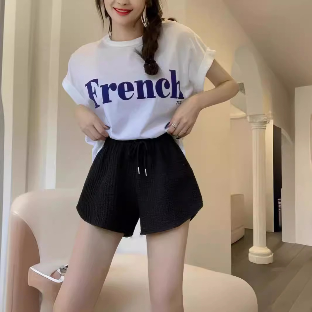 运动短裤女夏季薄款宽松休闲阔腿高腰辣妹热裤
