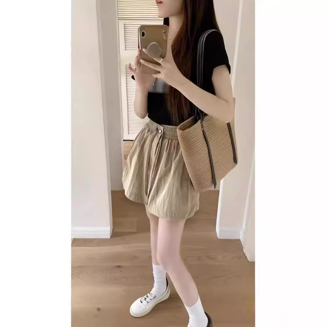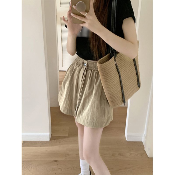 阔腿速干工装短裤女夏季新款高腰宽松休闲裤直筒热裤A字裤子薄款