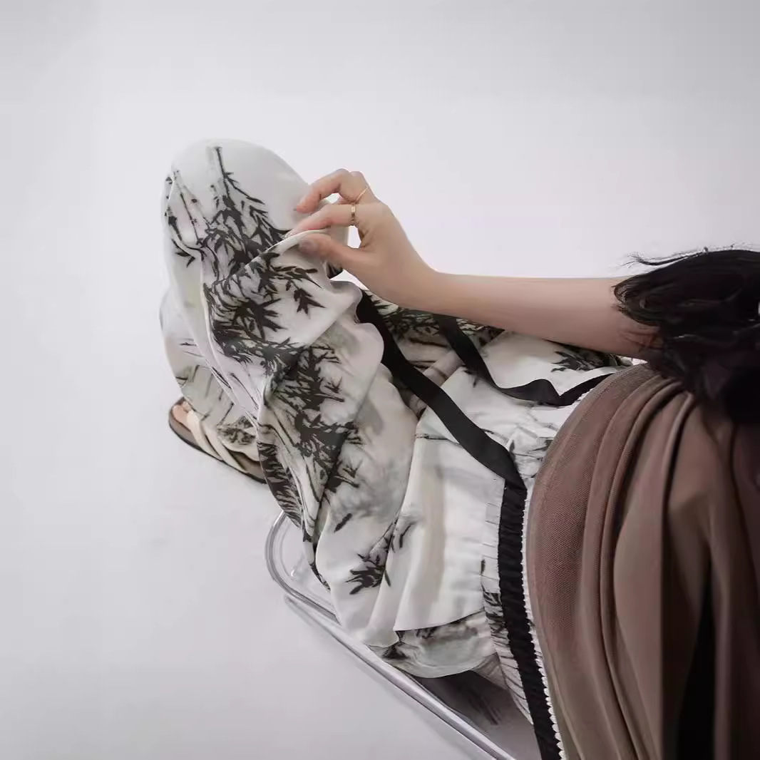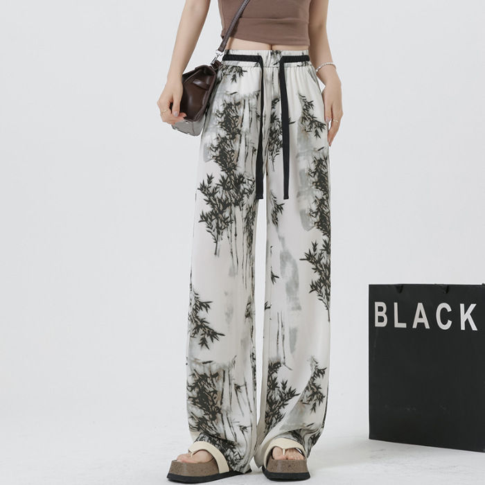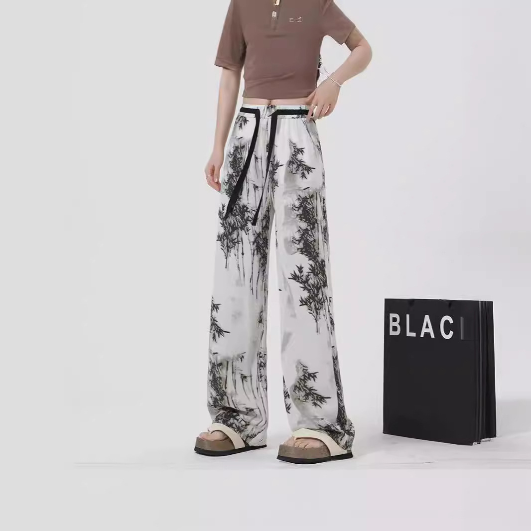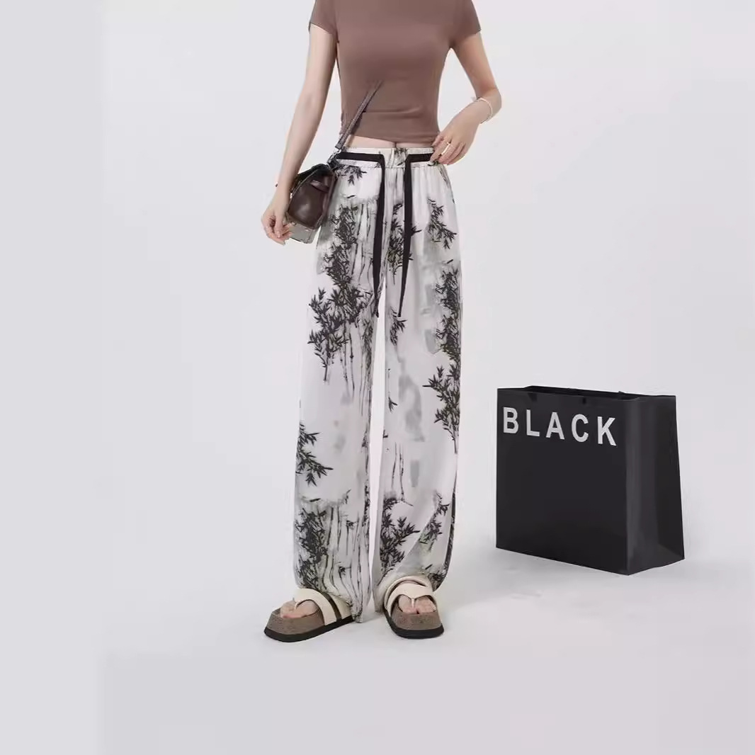 冰丝阔腿裤女夏薄款新款新中式水墨裤国风仙女凉凉雪纺防晒裤