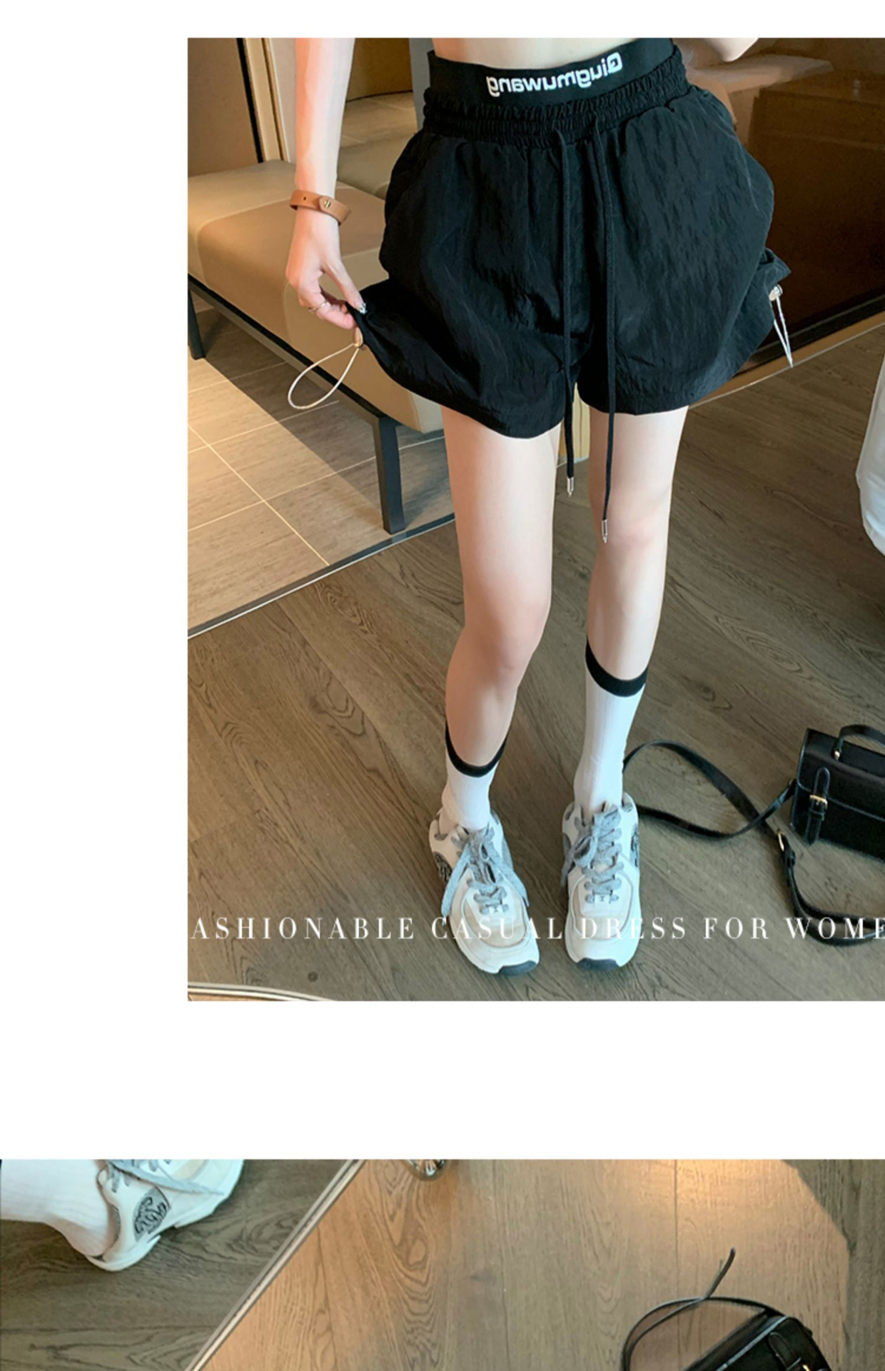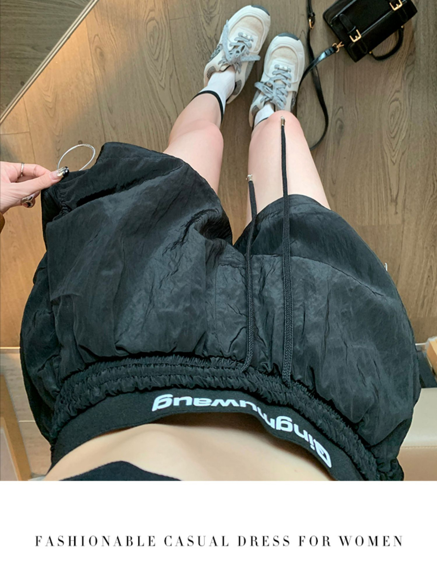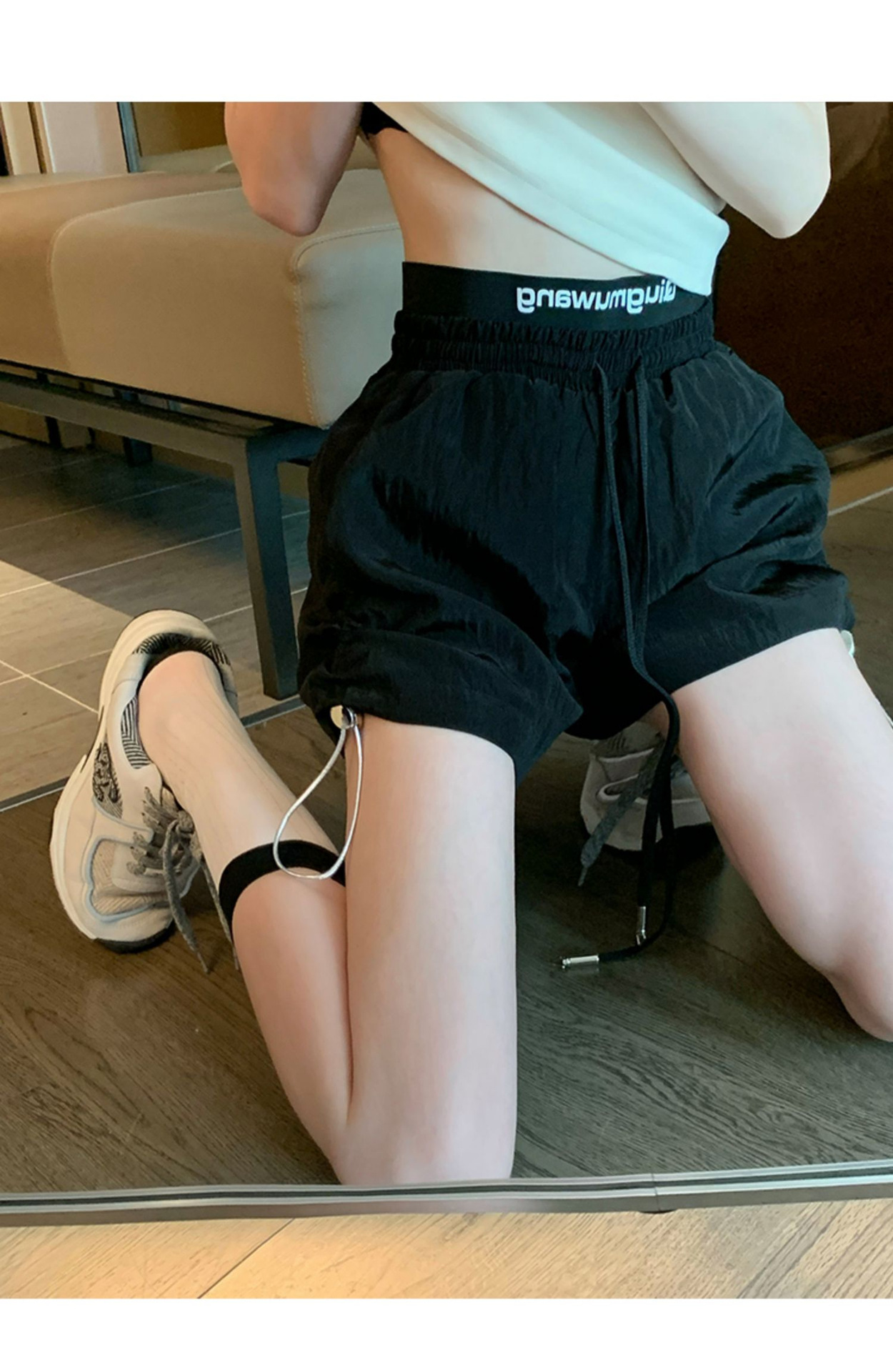 黑色休闲短裤女夏季新款高腰宽松设计感阔腿裤小个子抽绳热裤