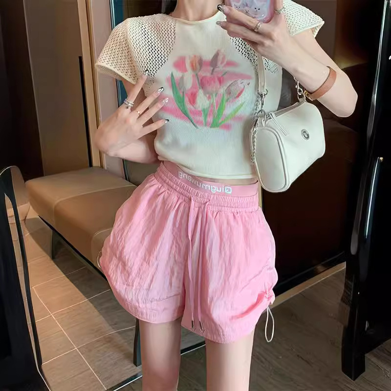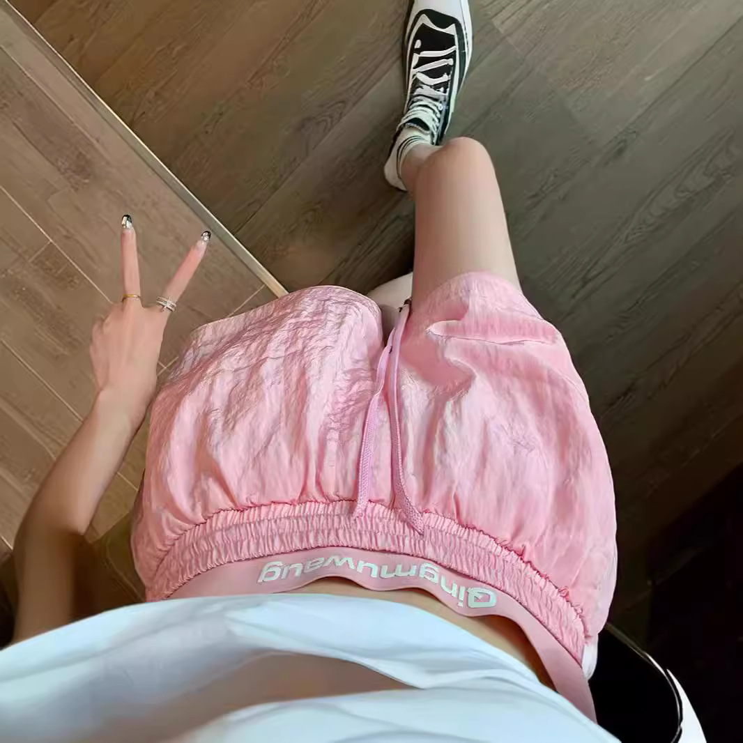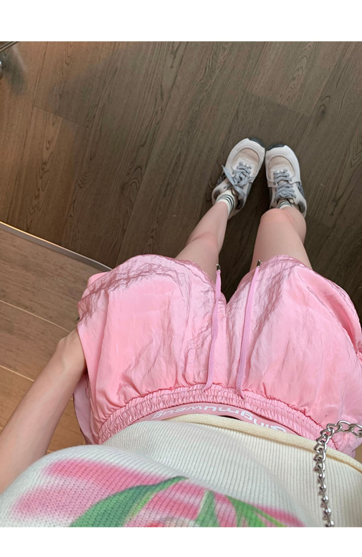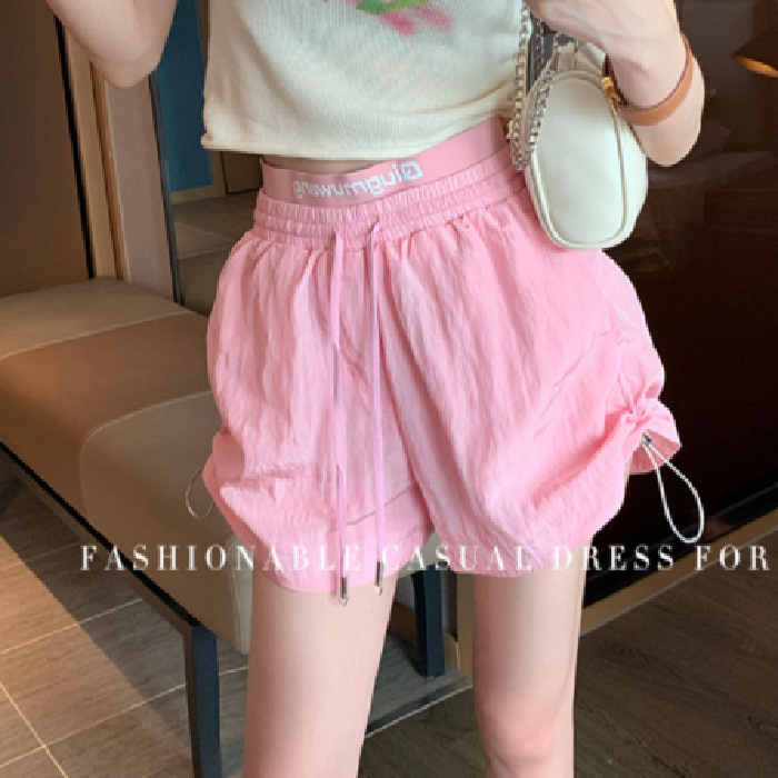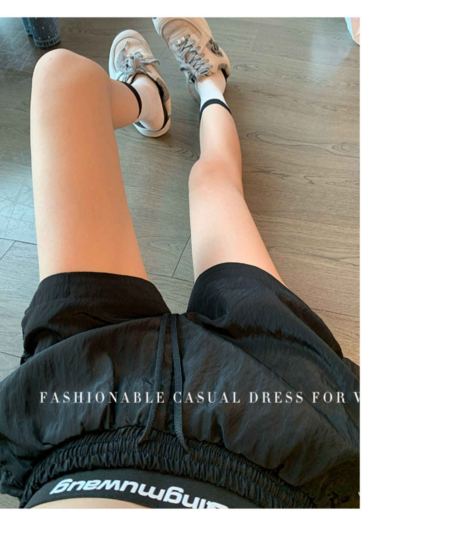 黑色休闲短裤女夏季新款高腰宽松设计感阔腿裤小个子抽绳热裤
