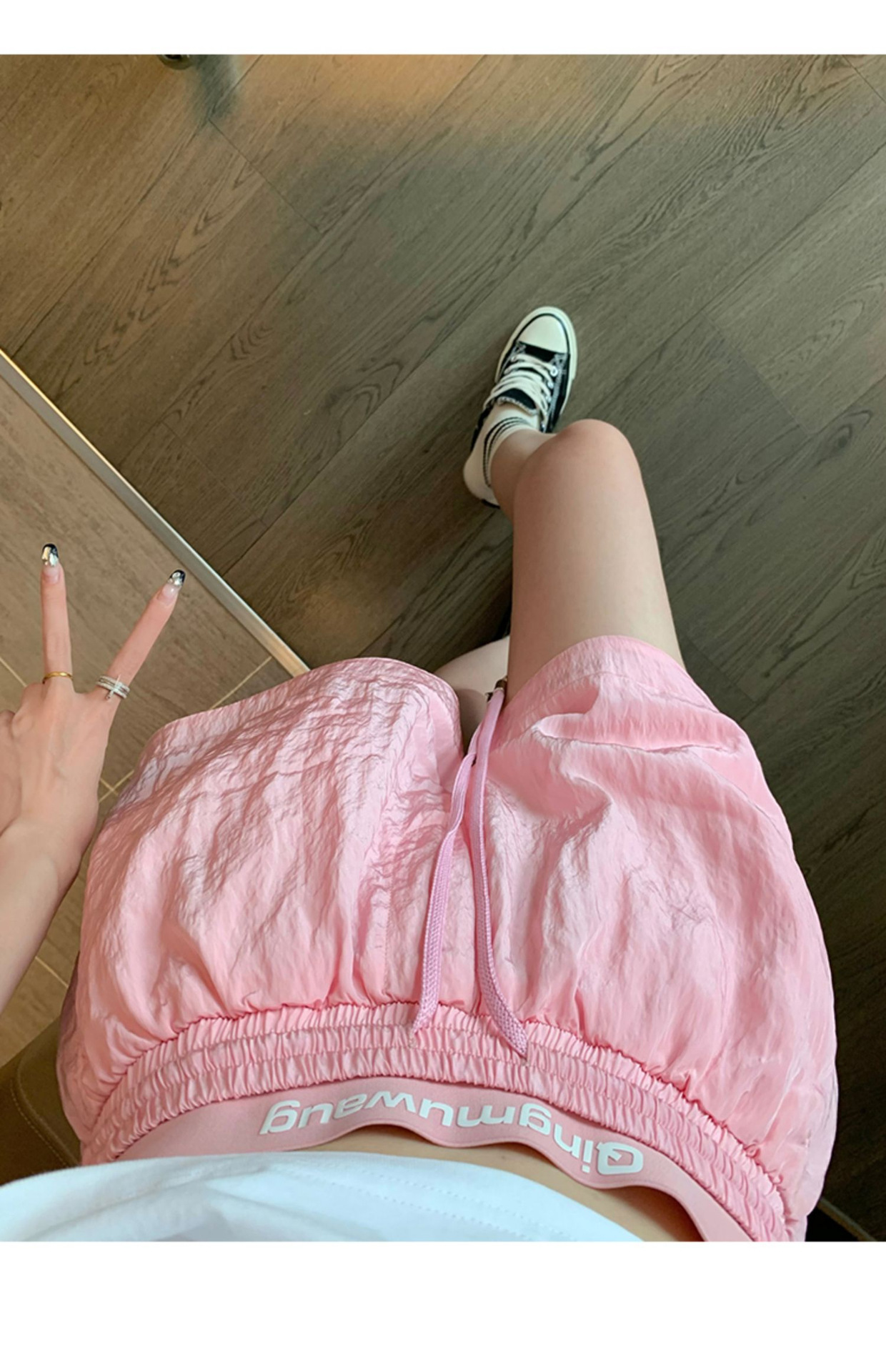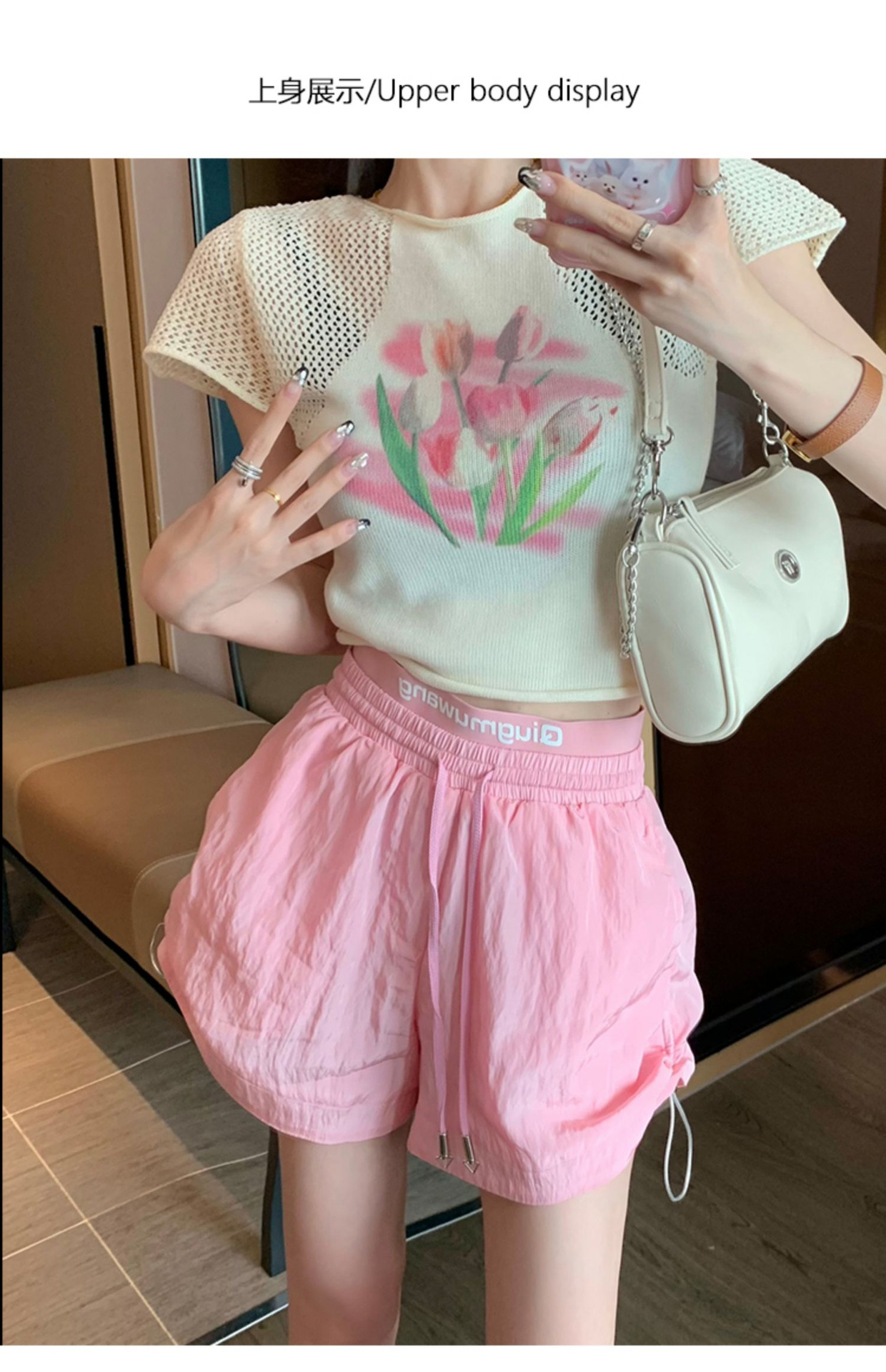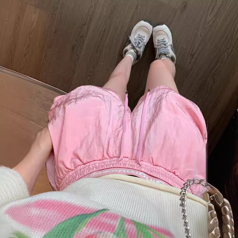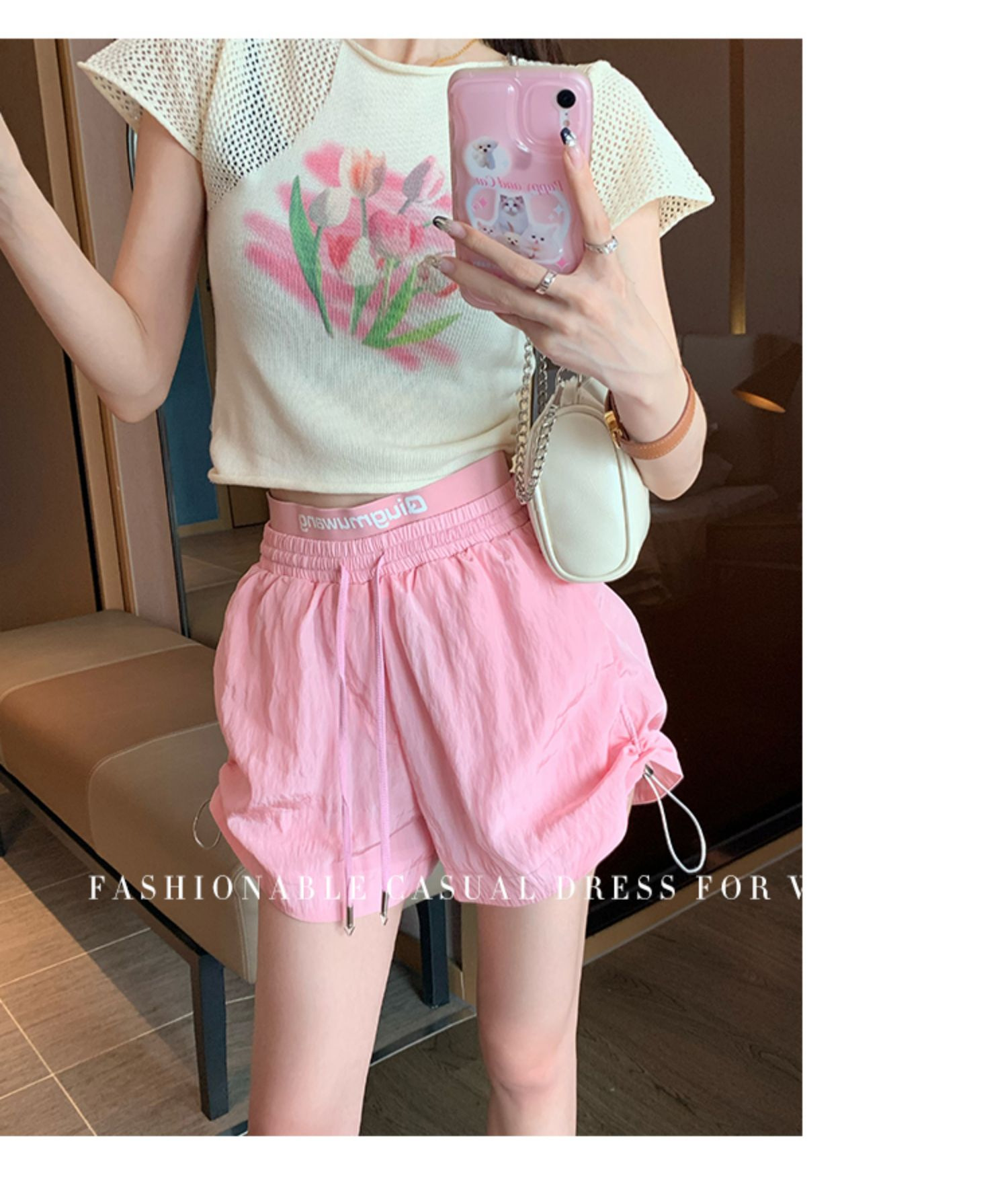 黑色休闲短裤女夏季新款高腰宽松设计感阔腿裤小个子抽绳热裤