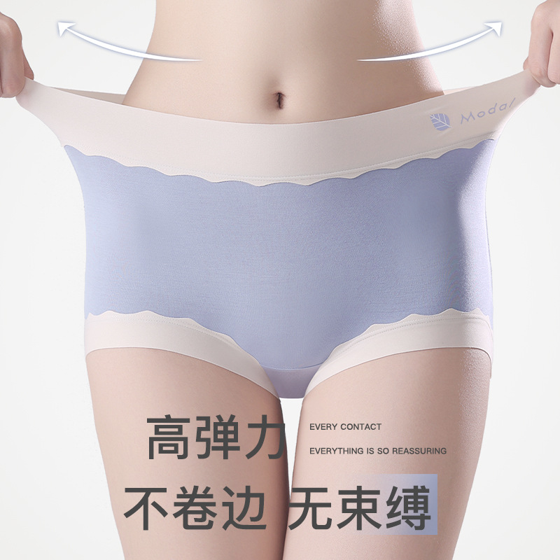 高弹力莫代尔拼接撞色无痕高腰提臀女士内裤亲肤裸感透气三角裤女