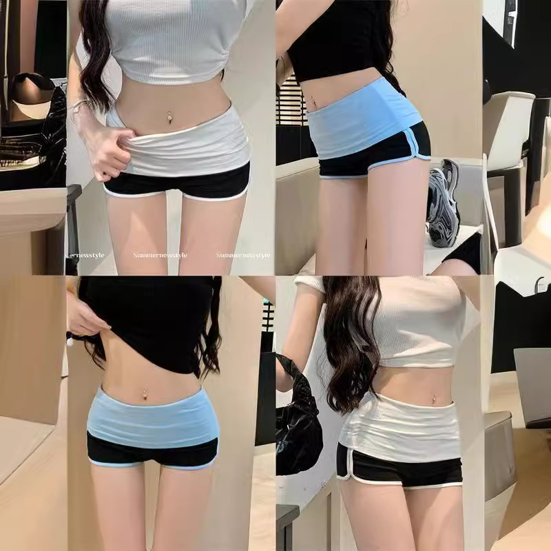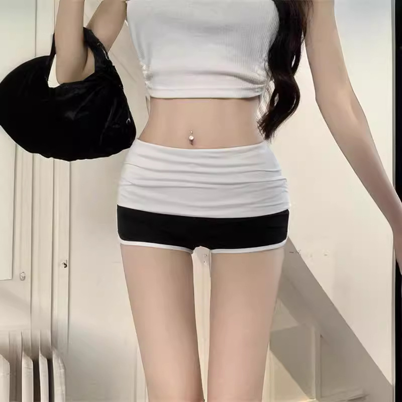 撞色辣妹纯欲风高腰短裤女修身显瘦阔腿热裤夏季运动外穿休闲裤子