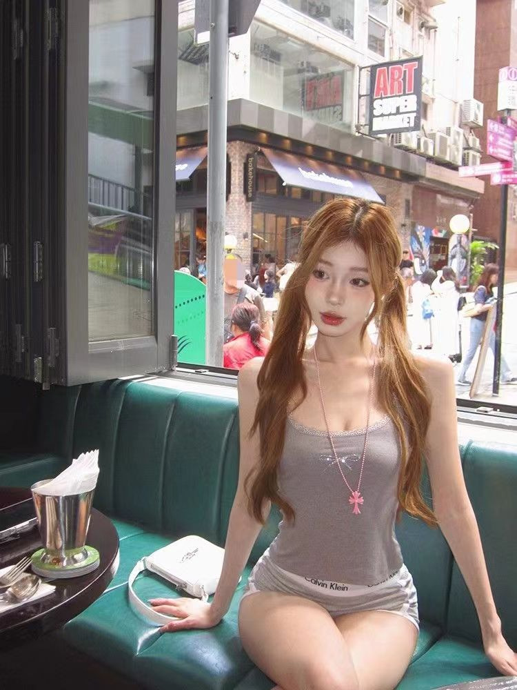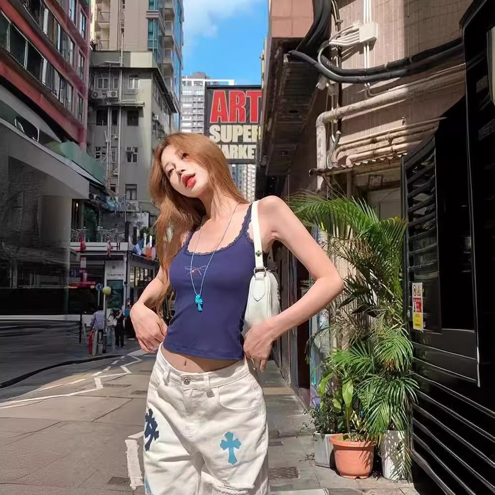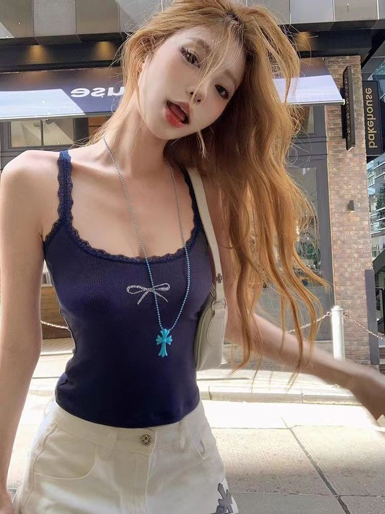 蕾丝花边烫钻吊带背心女夏季甜辣妹紧身短款内搭小众清纯上衣外穿