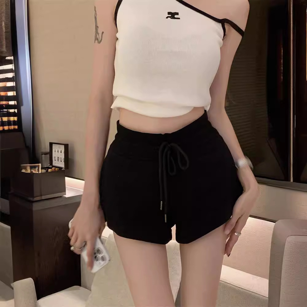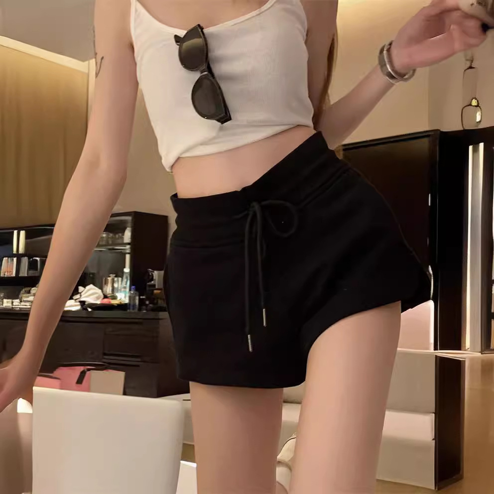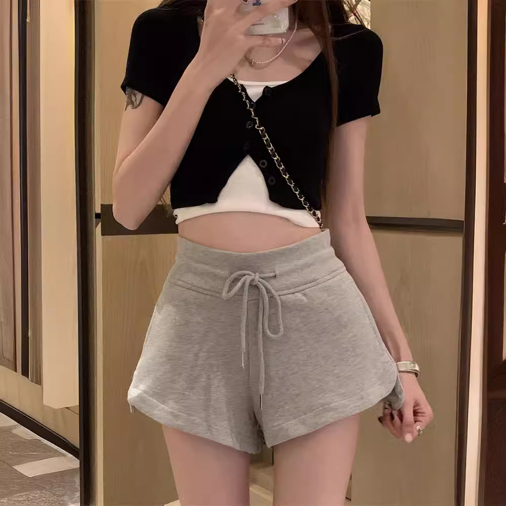 灰色运动短裤女夏季新款百搭高腰显瘦绑带小个子直筒休闲裤子