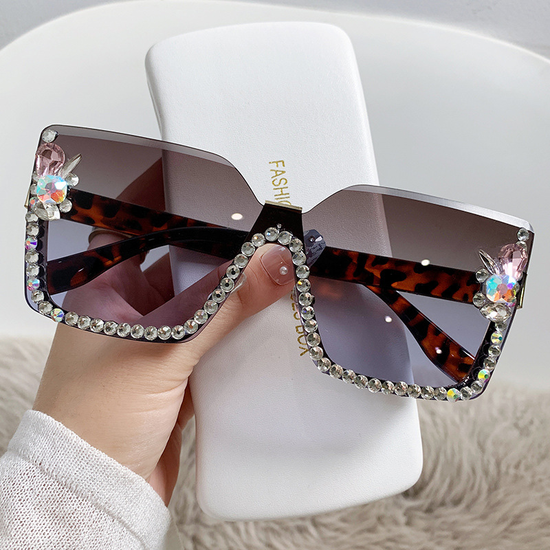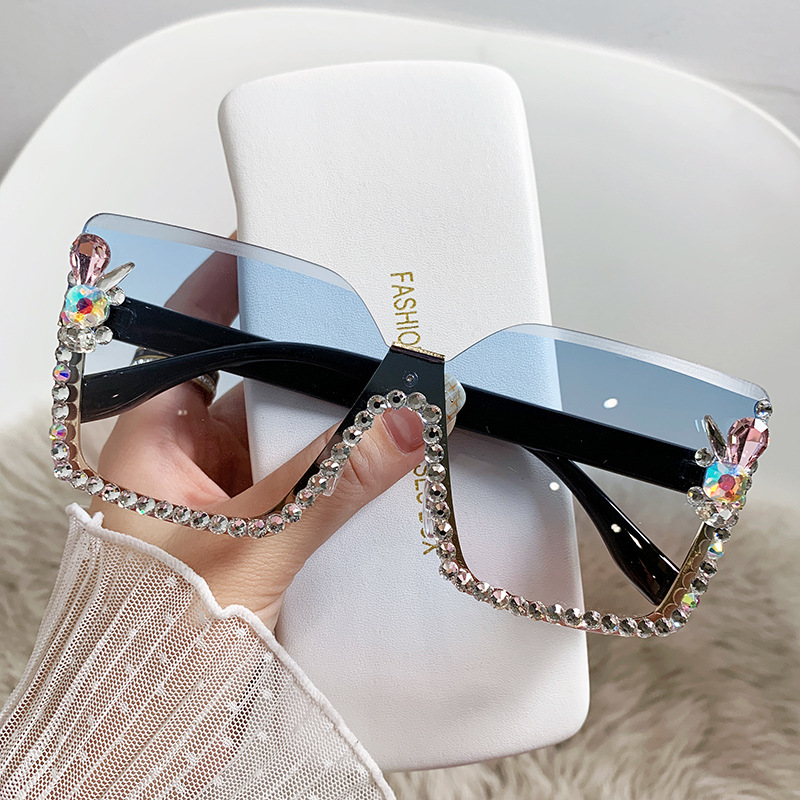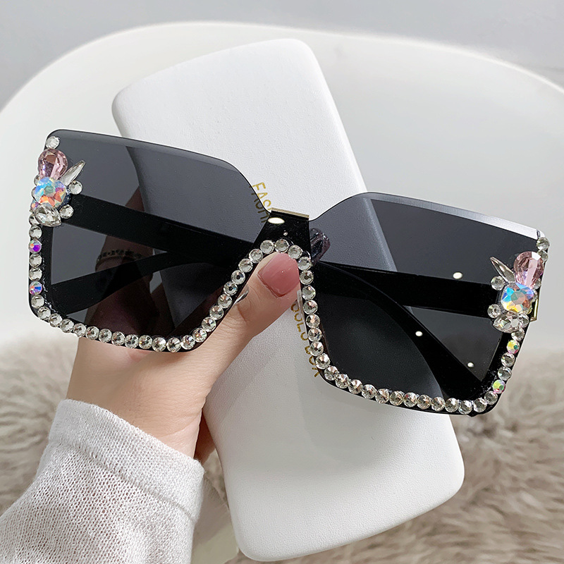 欧美镶钻大框架跨境新款水钻墨镜女潮款防紫外线防晒显瘦太阳镜