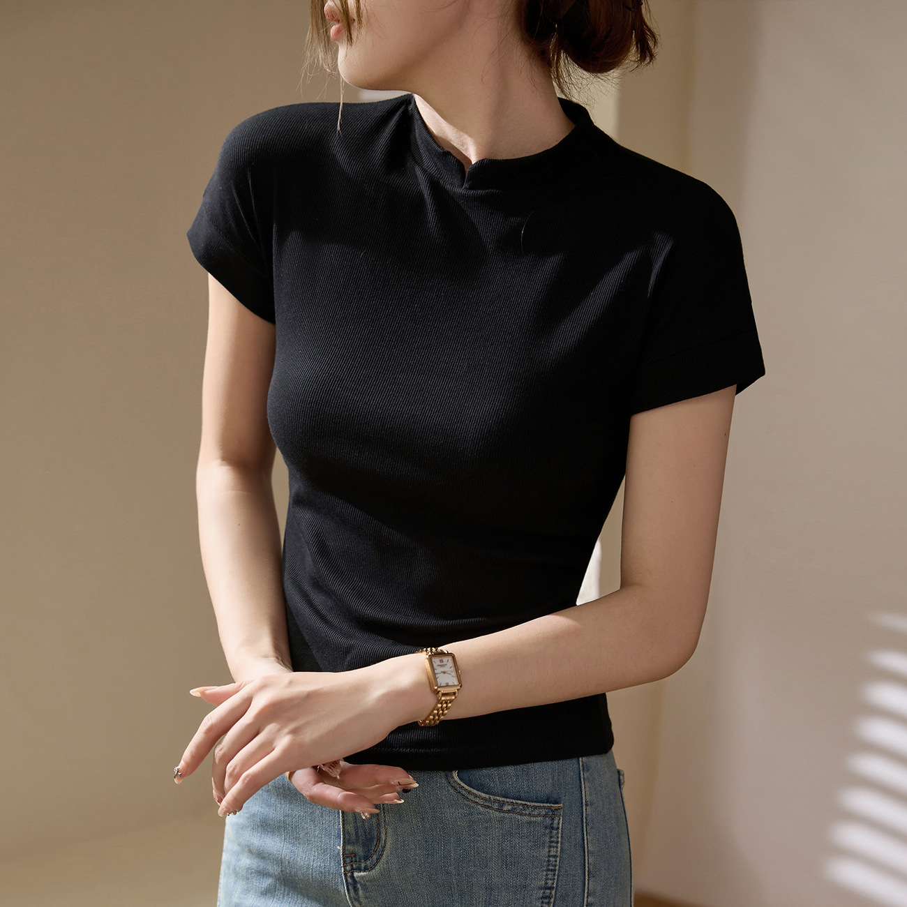 新中式国潮时尚小立领T恤女短袖2025夏季新品上衣正肩纯棉打底衫