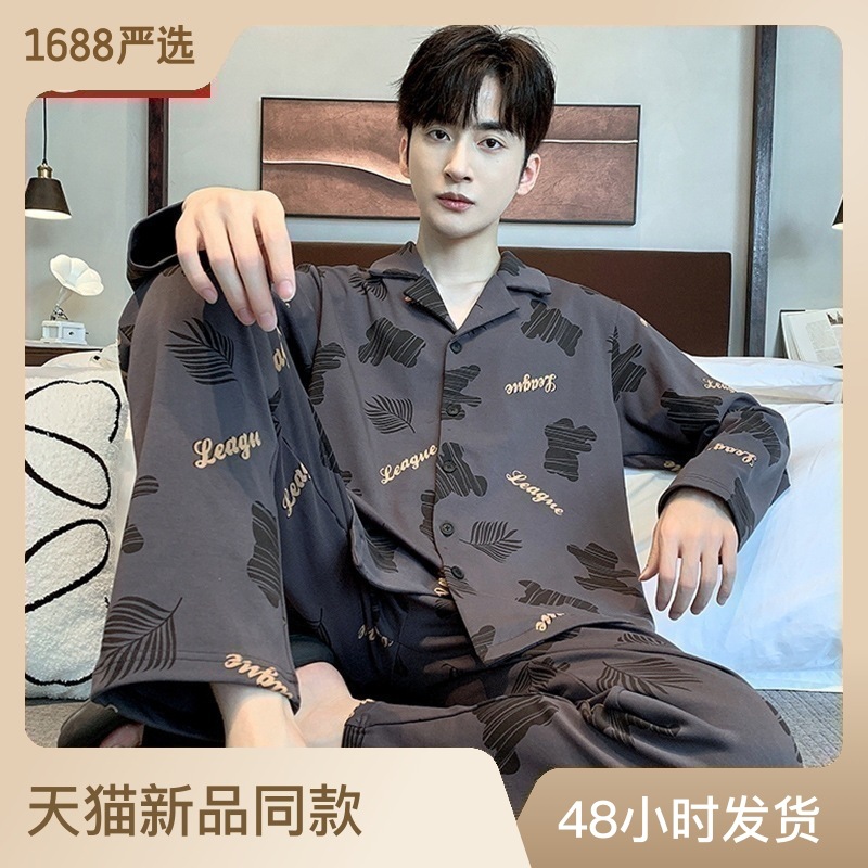 严选男士睡衣秋季纯棉长袖宽松休闲青少年开衫舒适家居服秋冬套装