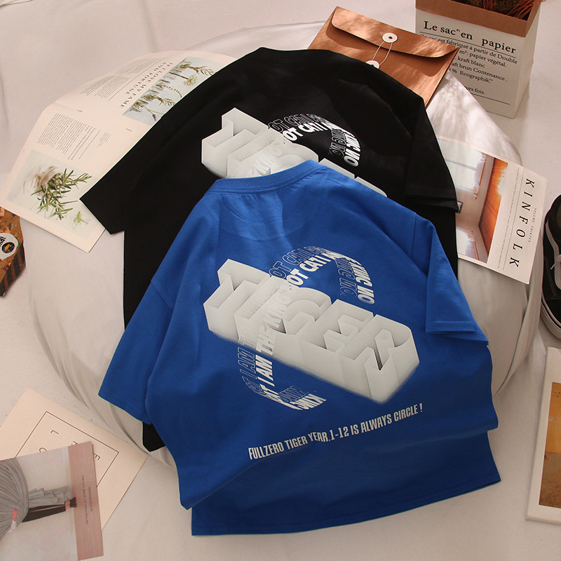 夏季新款简约虎头小标情侣短袖男女圆领休闲宽松半袖CXDT858