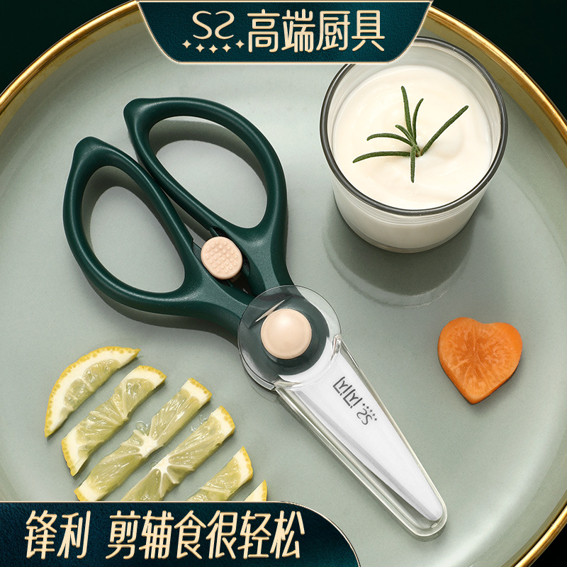 闪闪优品婴儿辅食剪刀 陶瓷剪刀收纳盒食物剪外带便携宝宝辅食剪