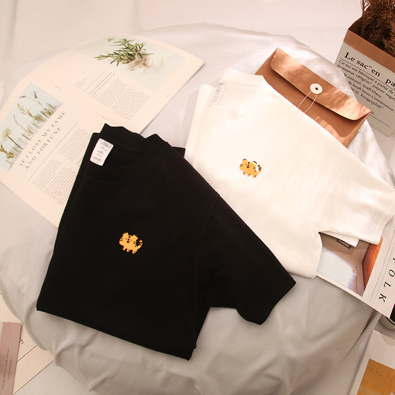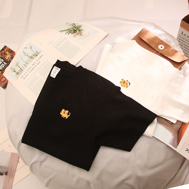 夏季新款圆领休闲刺绣卡通情侣短袖T恤男女宽松半袖潮CXDT856